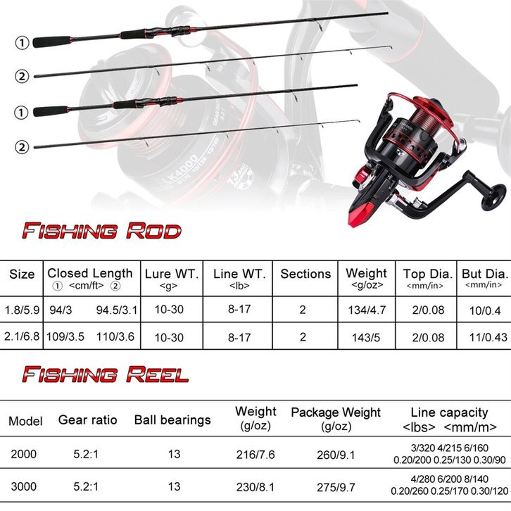 Sougayilang 1.8 - 2.1M Joran Pancing Set Reel Pancingan Set Lengkap 2 Bagian 13BB 5.2:1 Murah