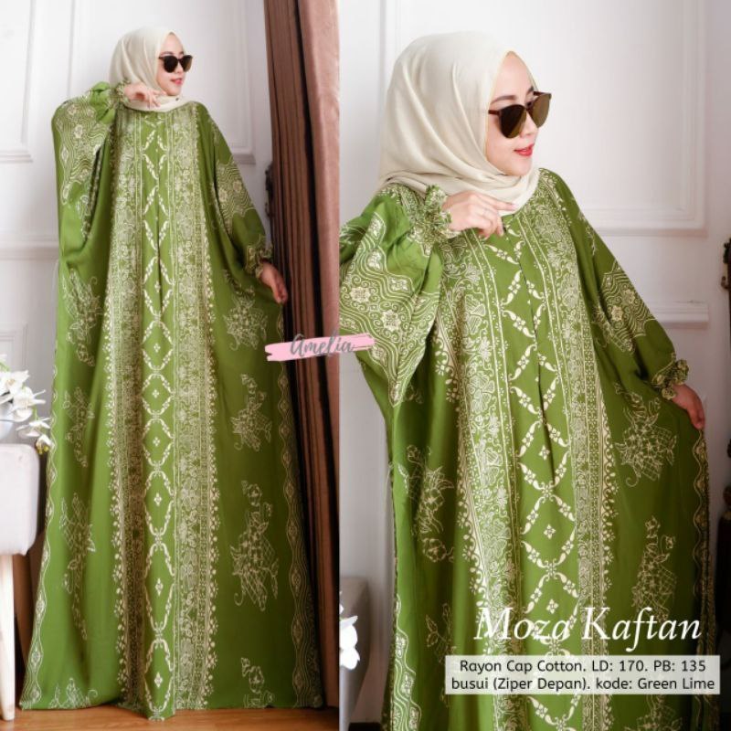 Moza Kaftan Long Dress Jumbo Daily Busui Motif Cap Bahan Rayon by Amelia Gamis Jumbo Gamis Kelelawar Dress Jumbo gamis K