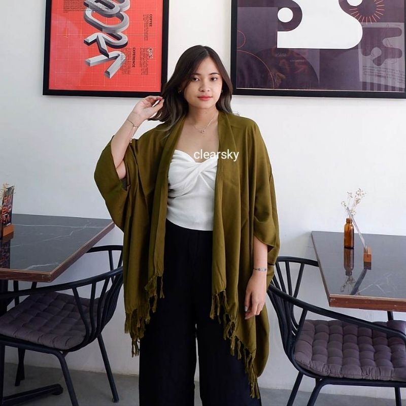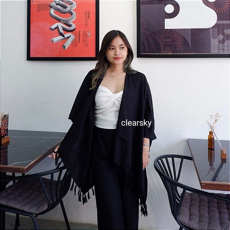 Clearsky - Cardigan Wanita Auter Pantai Polos Outer Rumbai Kardigan Bali Rayon Outfit Mantai