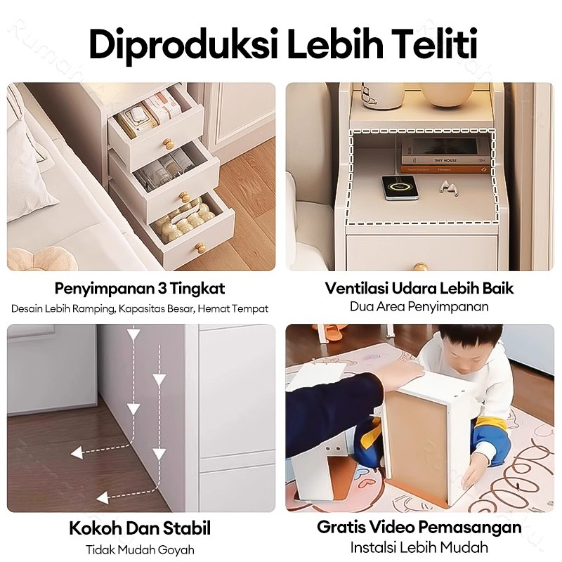 Meja Nakas Bedside Table Meja Kamar Tidur Lemari Laci Serbaguna Meja Nakas kayu Nakas Minimalis 87CM meja nakas meja nak