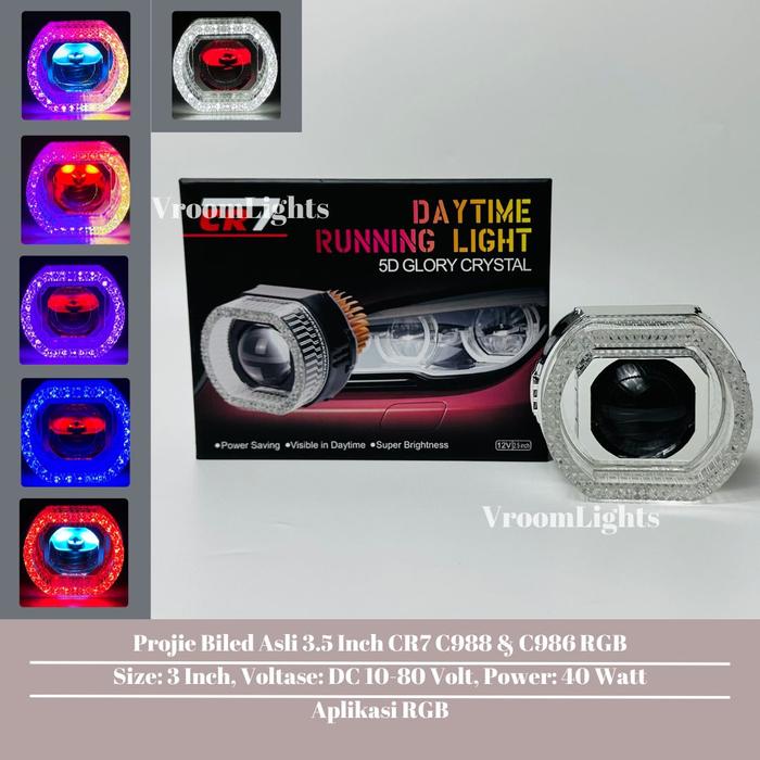 DP 0 CR7 TIPE C988 & C986 PROJIE BILED 3 INCH SHROUD AKRILIK RGB APP & NON RGB - UNGU DE MERAH