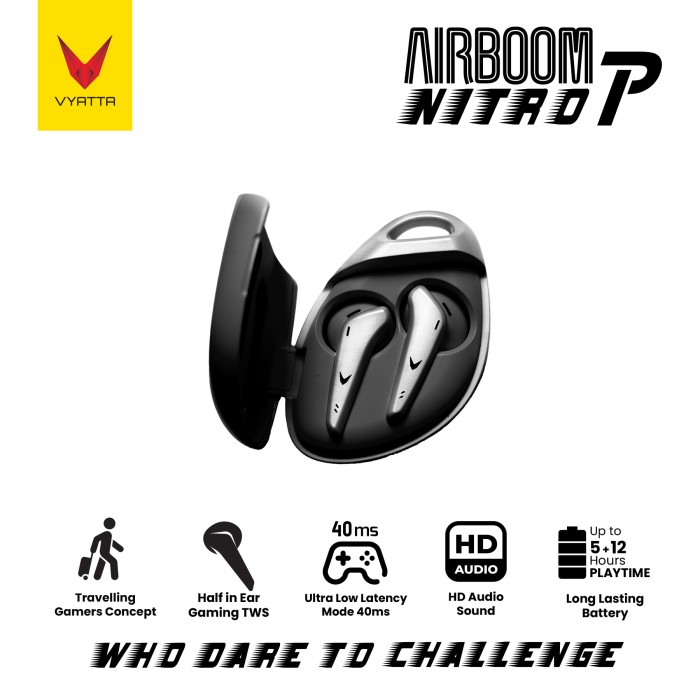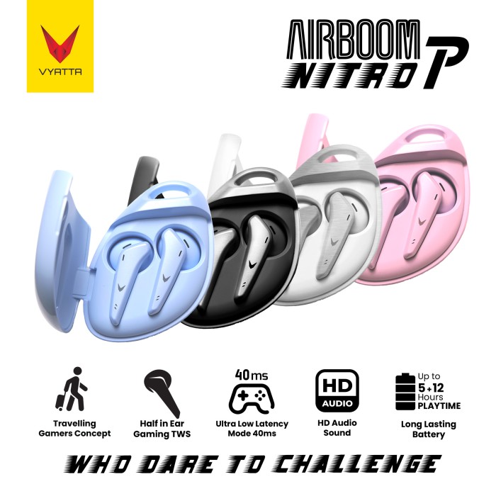 DP 0 VYATTA AIRBOOM NITRO P TWS BLUETOOTH HEADSET GAMING MODE 40MS PINK, TANPA CHARGER