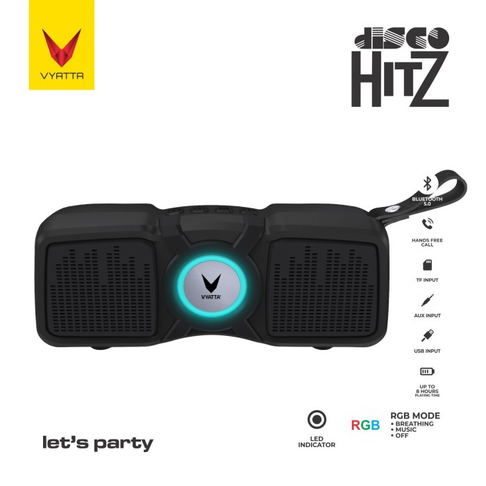 DP 0 VYATTA DISCO HITZ TWS BLUETOOTH SPEAKER 10W BASS RGB LED DISCO HITZ, TANPA CHARGER