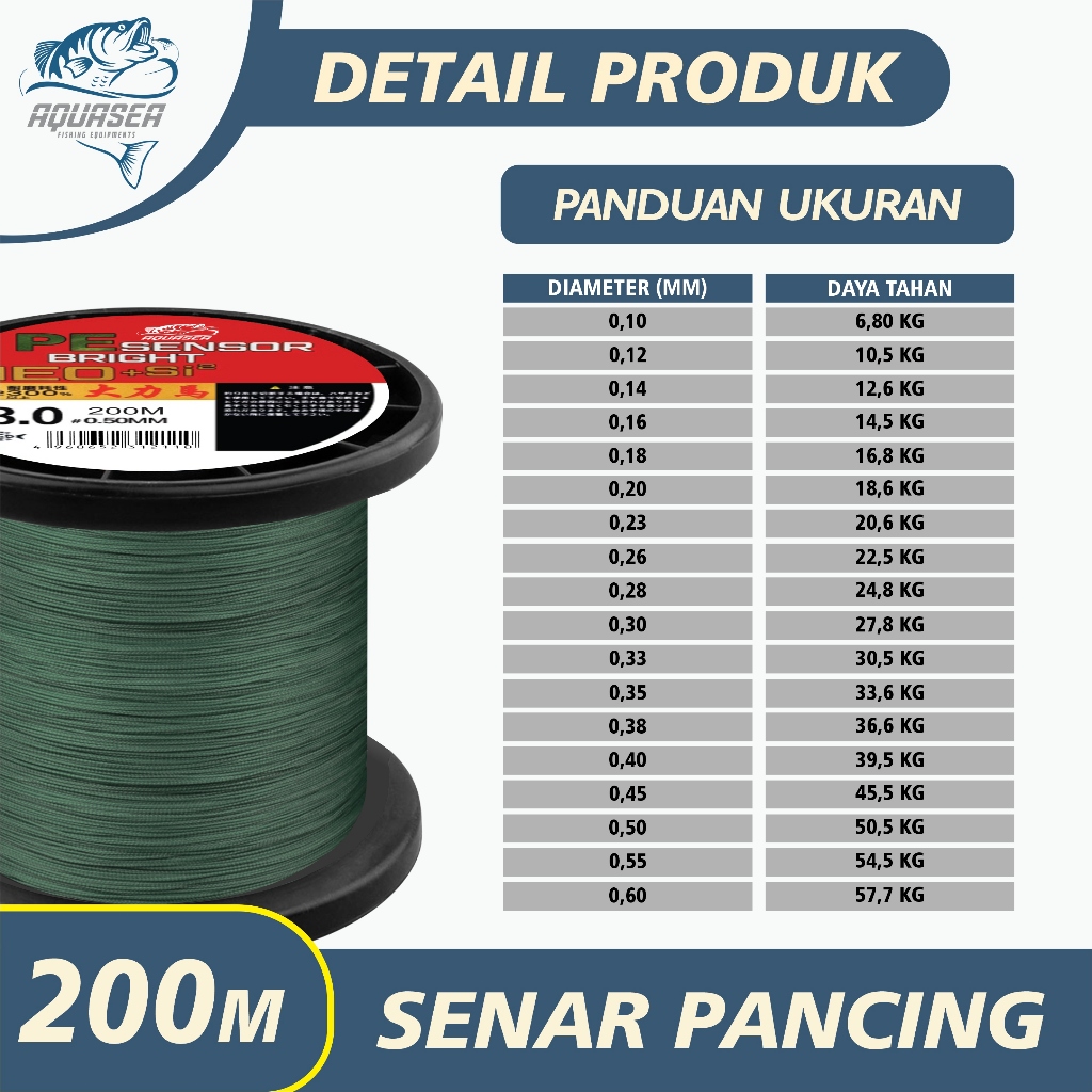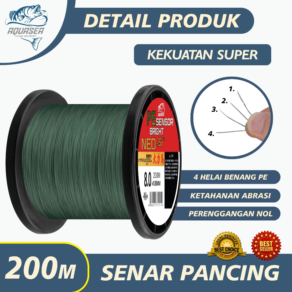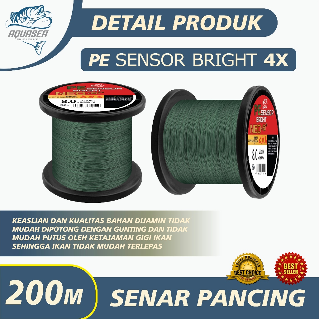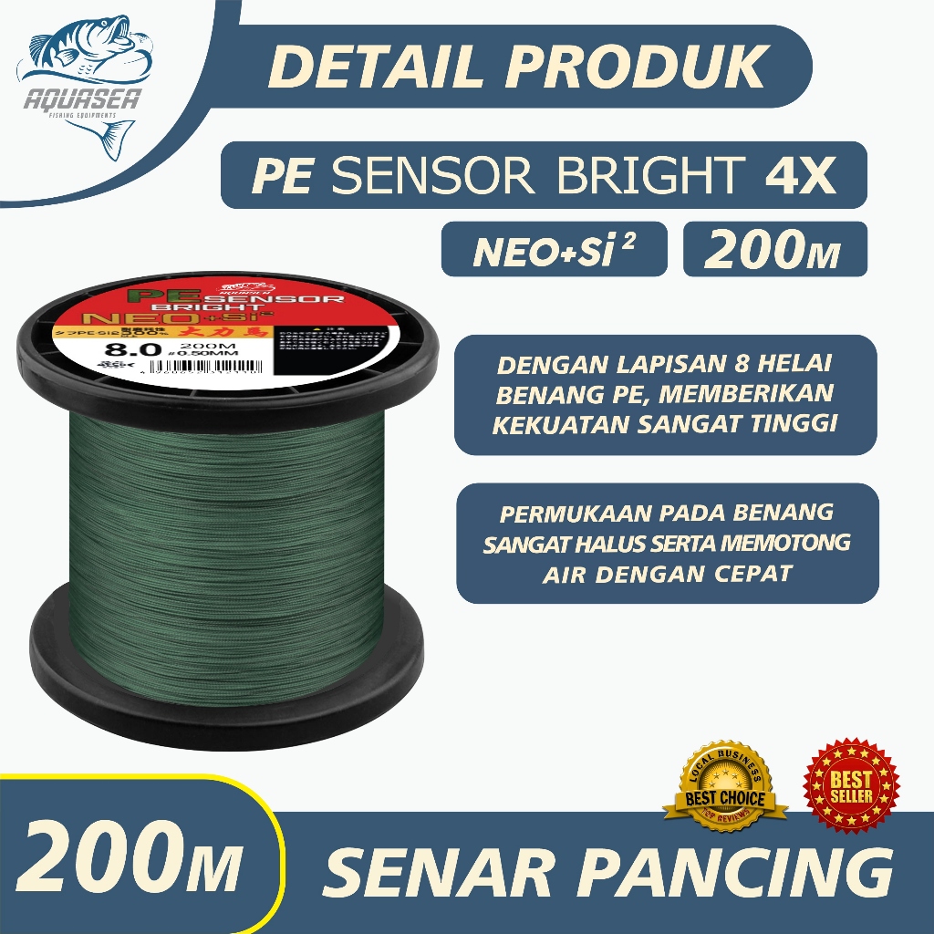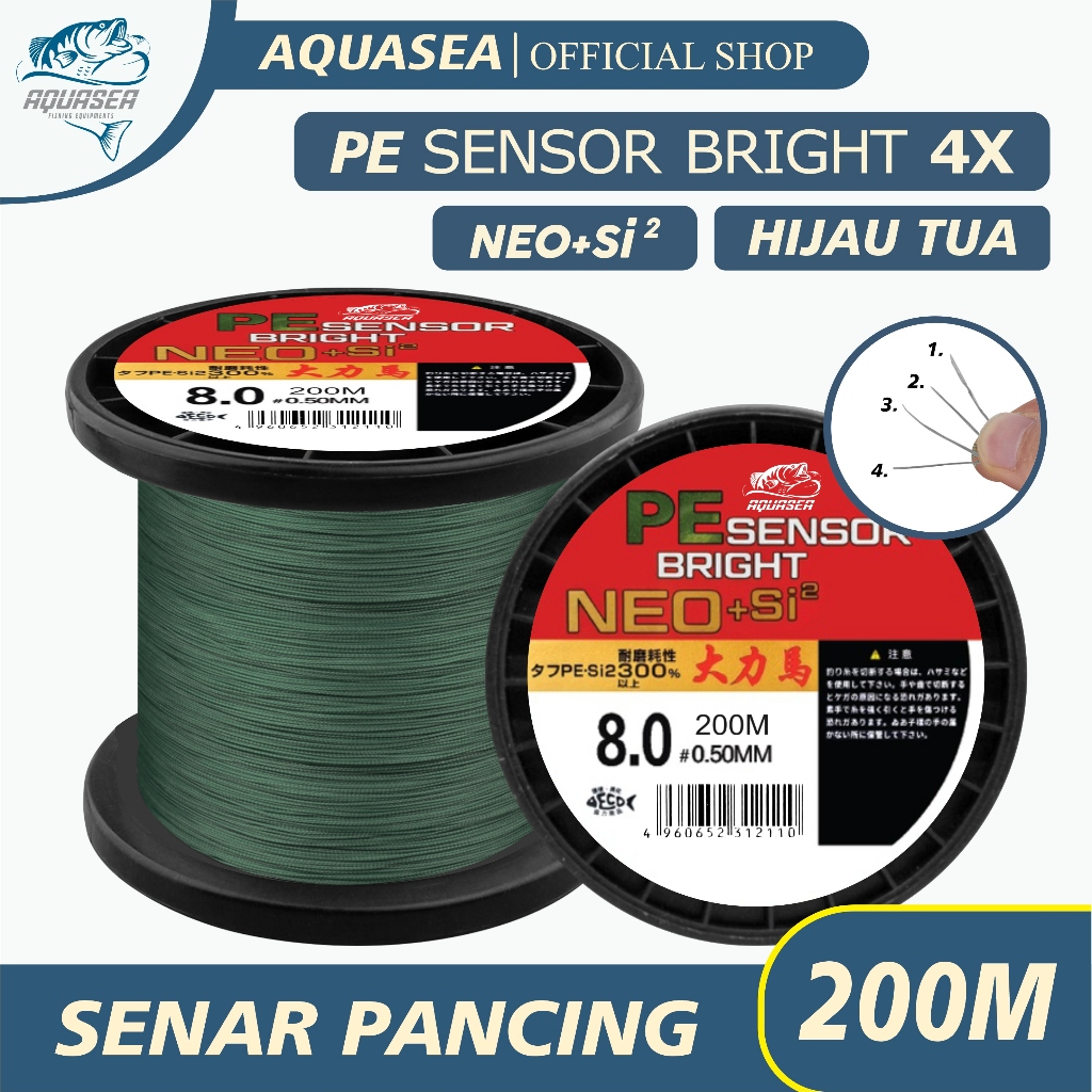 AQUASEA - Tali Pancing Sensor Bright 200m Pancing PE NEO+si2 Jepang Pancing Kuat & Tahan Bahan PE