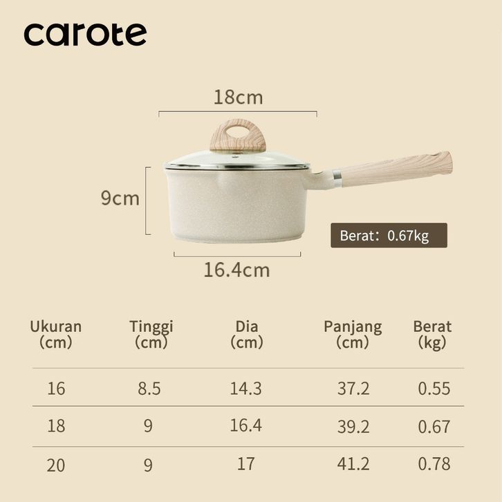 [Star] CAROTE Panci Susu Satuan16/18 cm Lapisan Granit Anti Lengket Dilengkapi Dengan Tutup Kaca Cocok Untuk Semua Jenis