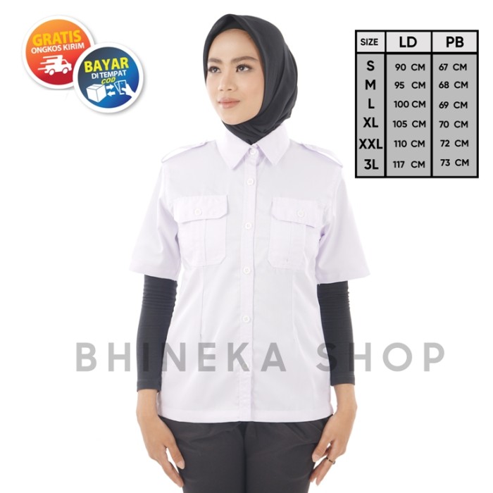 DP 0 KEMEJA PUTIH DINAS WANITA BAJU PUTIH PDH PNS WANITA LENGAN PENDEK PDH KERAH KMEJA, M