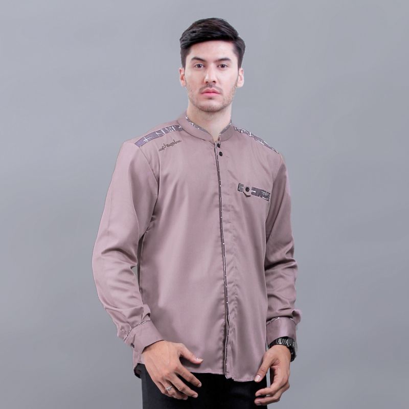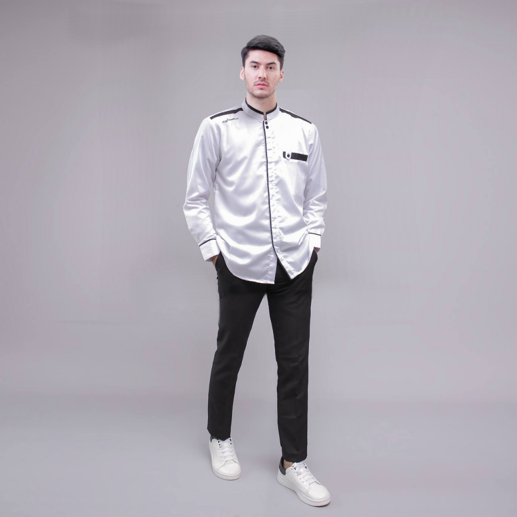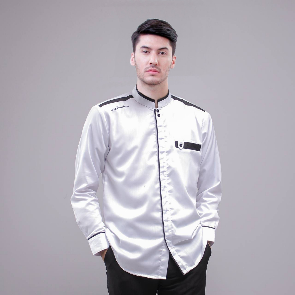 Baju Koko Pria Elrumi Lengan Panjang Motif Yisunsin Warna Putih
