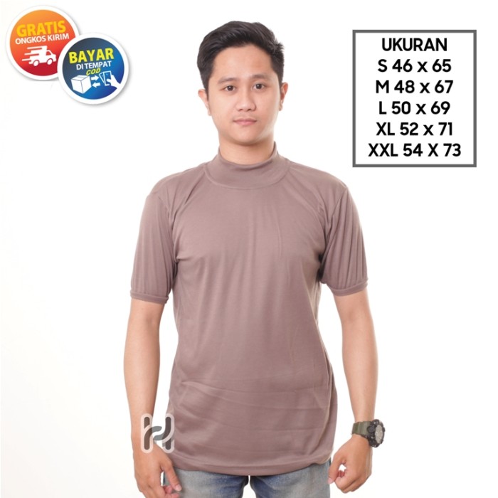 DP 0 POLISI KAOS SECURITY KAOS SATPAM POLOS TERBARU KERAH TINGGI WARNA COKL M KERAH TINGGI, COKLAT POLOS
