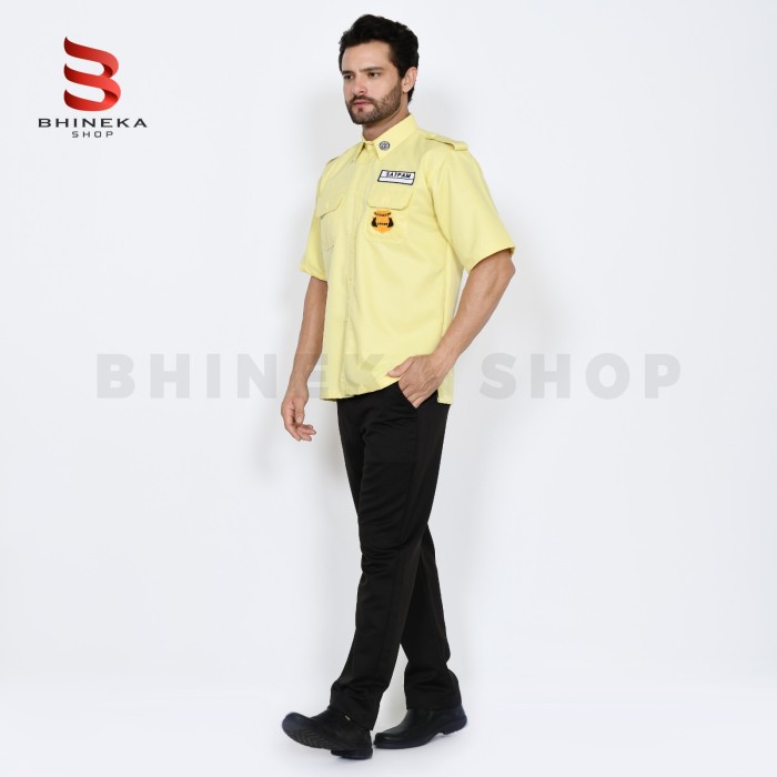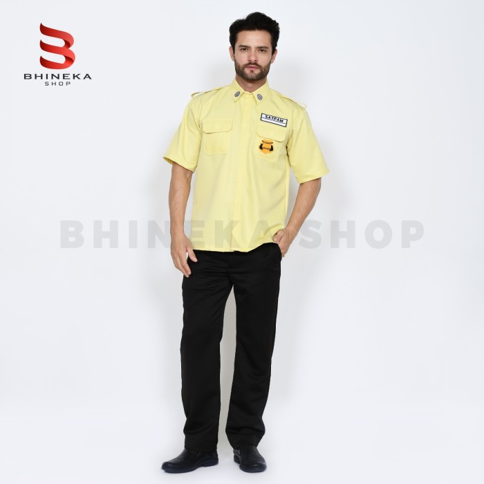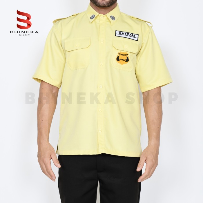 DP 0 SERAGAM PDH SECURITY SATPAM LENGAN PENDEK WARNA CREAM TERBARU KEMEJA PENDEK, S