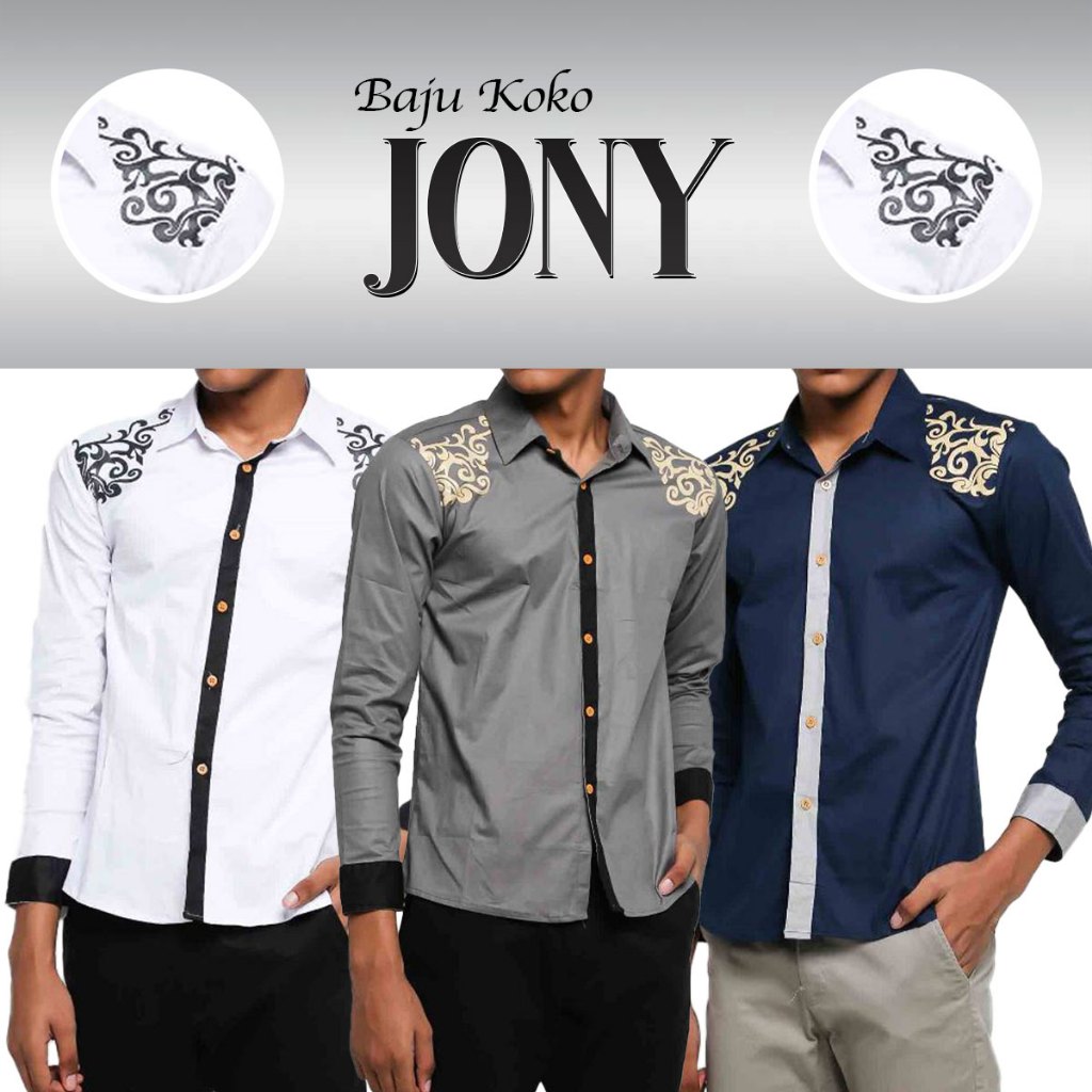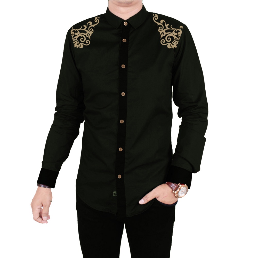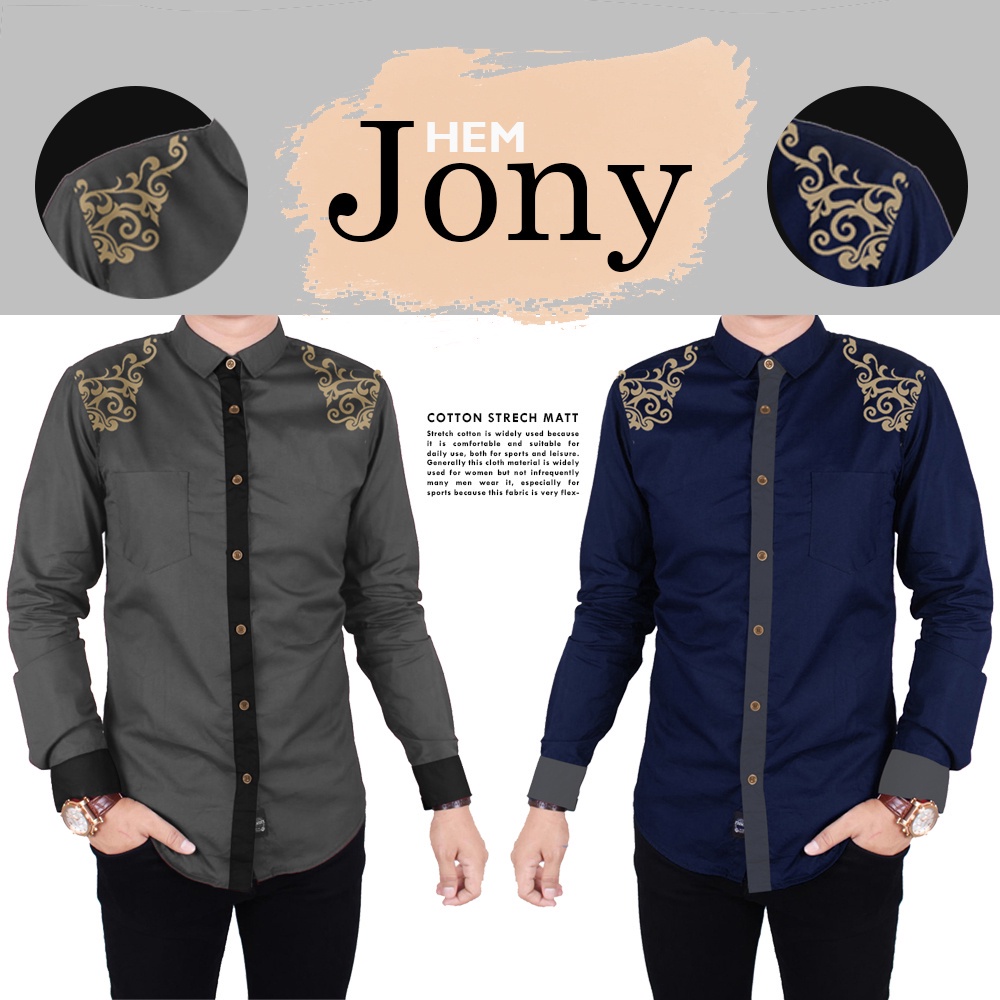 FortKlass jony kemeja polos pria lengan panjang formal slimfit cowok Baju Koko Sablon Motif Kemeja Tangan Panjang Lebara