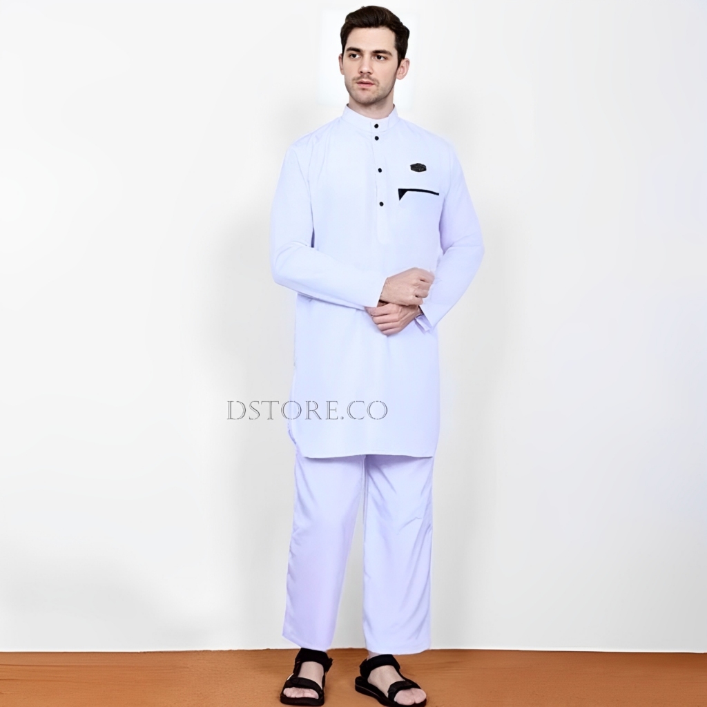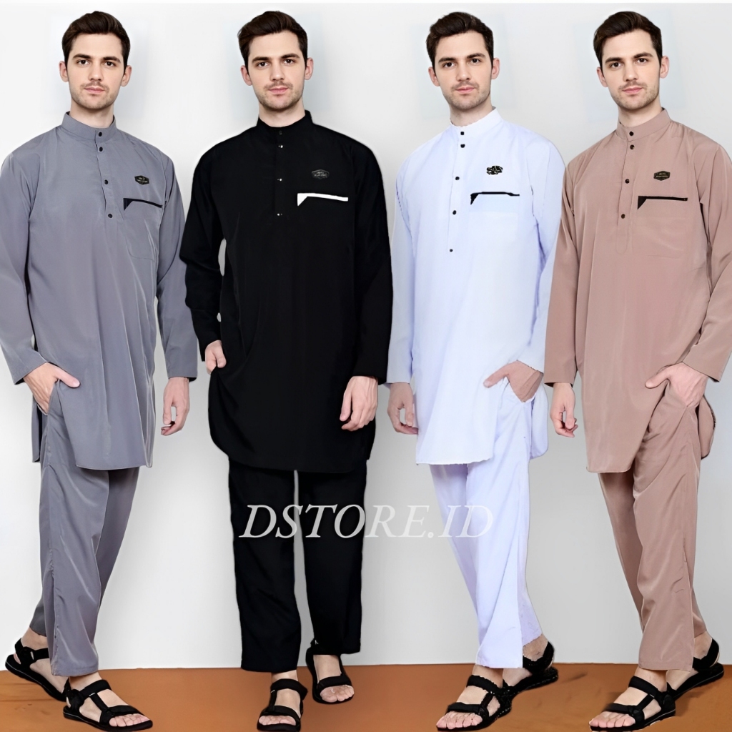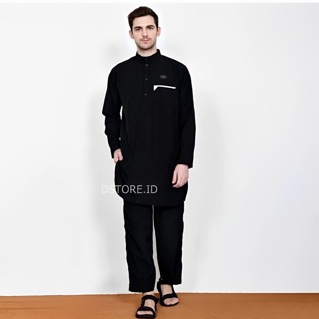 Koko Setelan Polos Lengan Panjang - Baju Kurta Pakistan Set Celana - Koko Pria Dewasa - Free Peci Dan Tasbih
