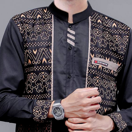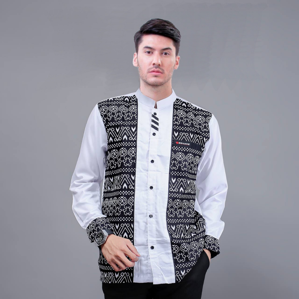 Baju Koko Pria Dewasa Lengan Panjang El Rumi Kombinasi Batik Motif Jarilist