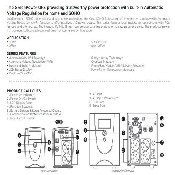 CyberPower Backup UPS Systems Local Sockets For Soho Applications (Value600ELCD)
