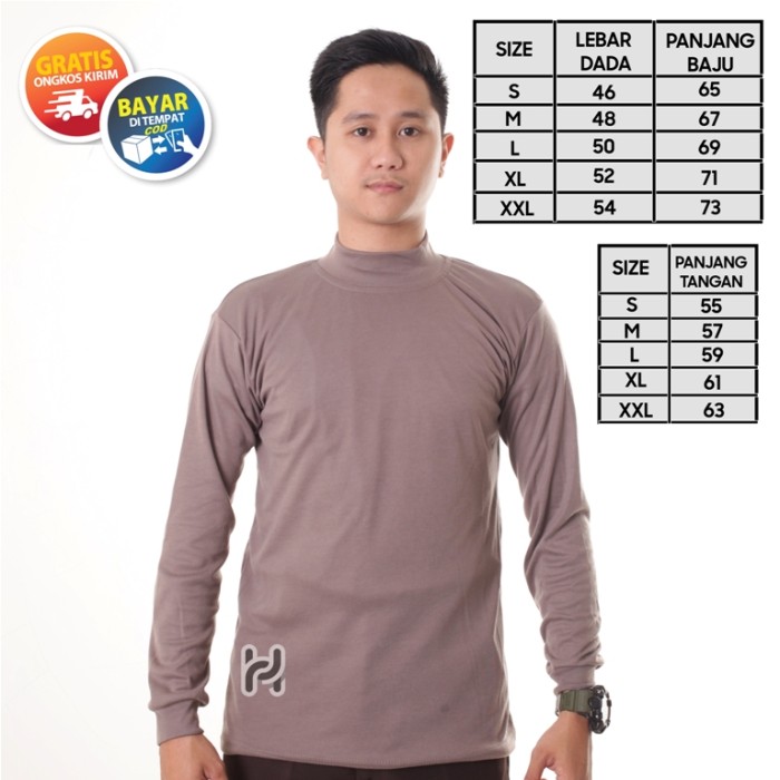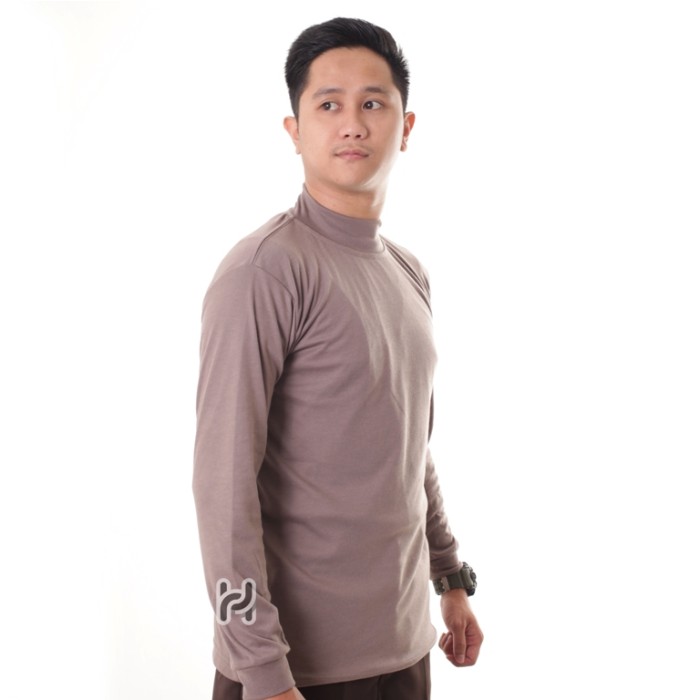 DP 0 KAOS SECURITY POLISI SATPAM POLOS TANGAN PANJANG KERAH TINGGI COKELAT COKELAT POLOS, MKERAH TINGGI