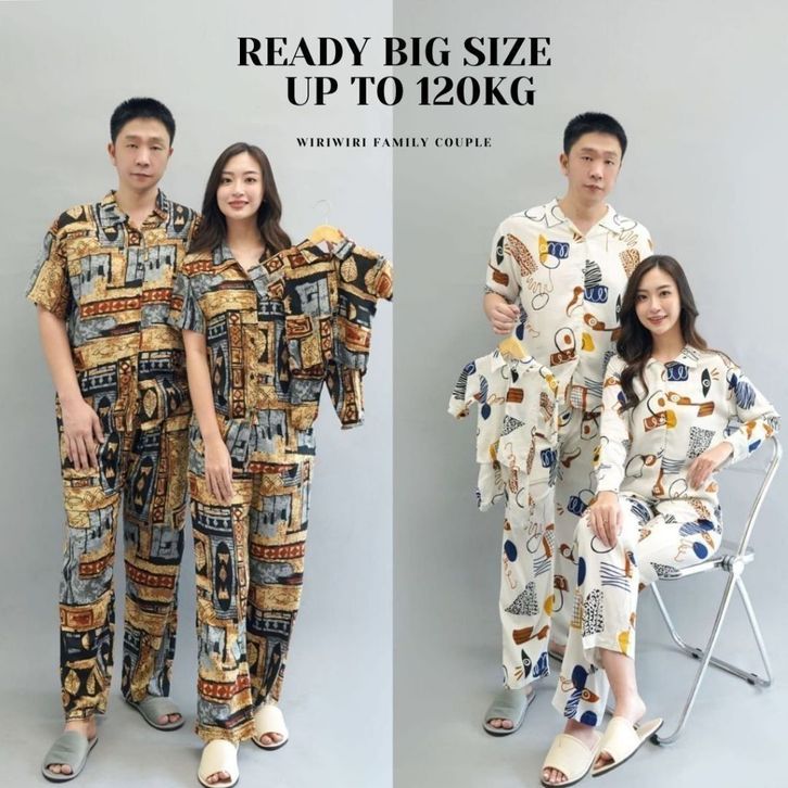 Wiriwiri Piyama Couple Ibu, Bapak Dan Anak Bahan Rayon Premium