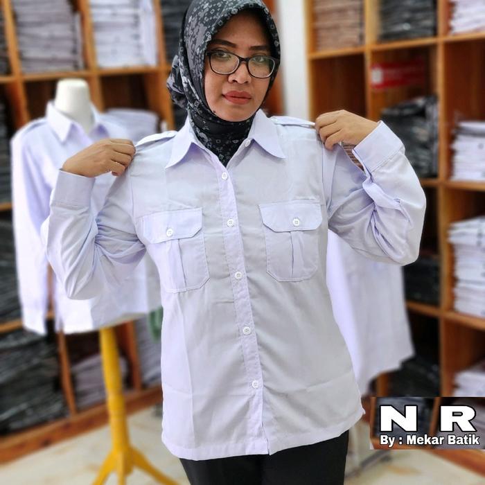 BAJU KERJA DINAS SERAGAM WANITA PUTIH KATUN LENGAN PANJANG ASN PNS PPL SECURITY DLL PUTIH PDH S