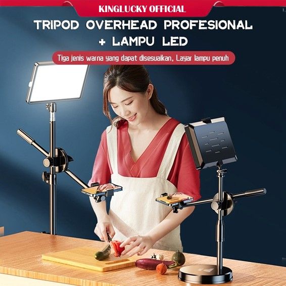 Stand Holder Overhead Phone Stand + Led Lampu Stand Holder Phone Holder Bracket 360° Lampu Fotografi