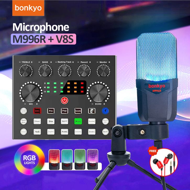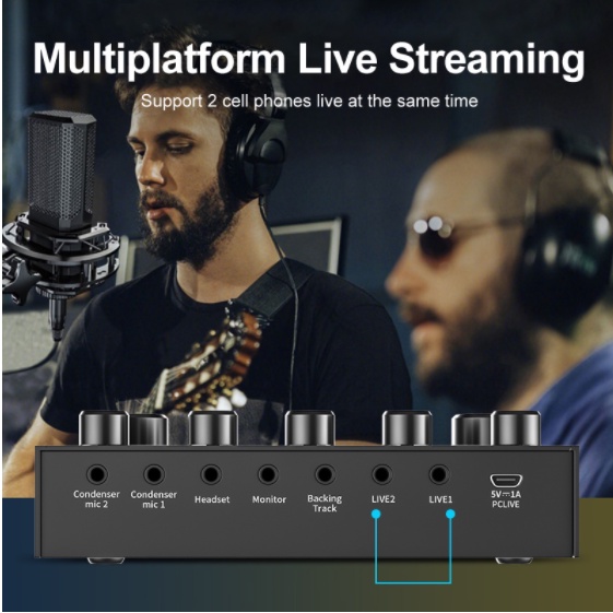 V8s Soundcard Audio Usb External Mixer Bluetooth Mic For Phone Pc Sound Card Live