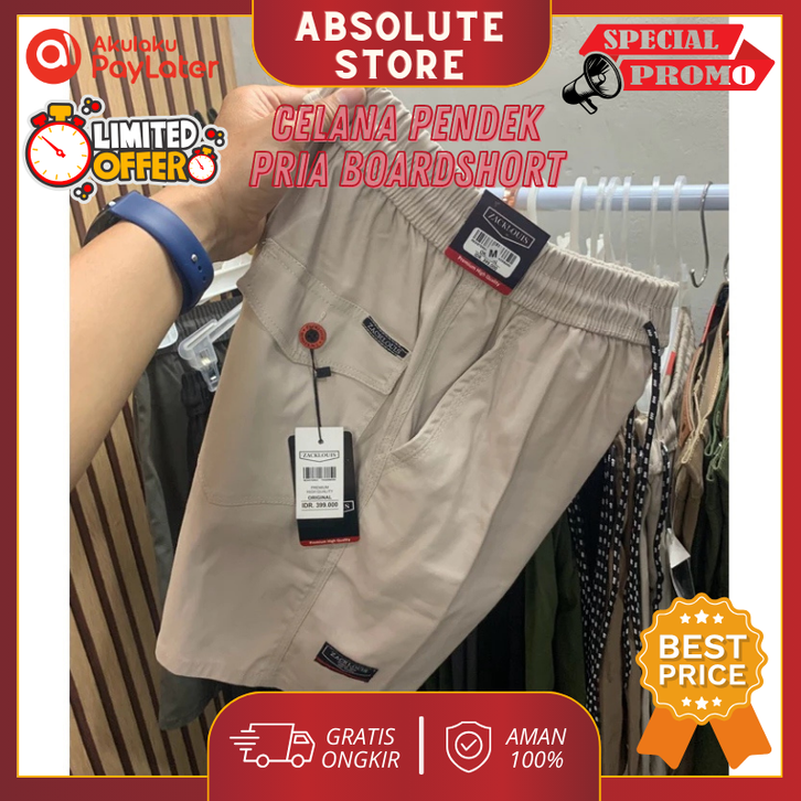 GRATIS ONGKIR - Celana Pendek Pria Boardshort Pinggang Karet Stetch/Melar Size 27 - 38