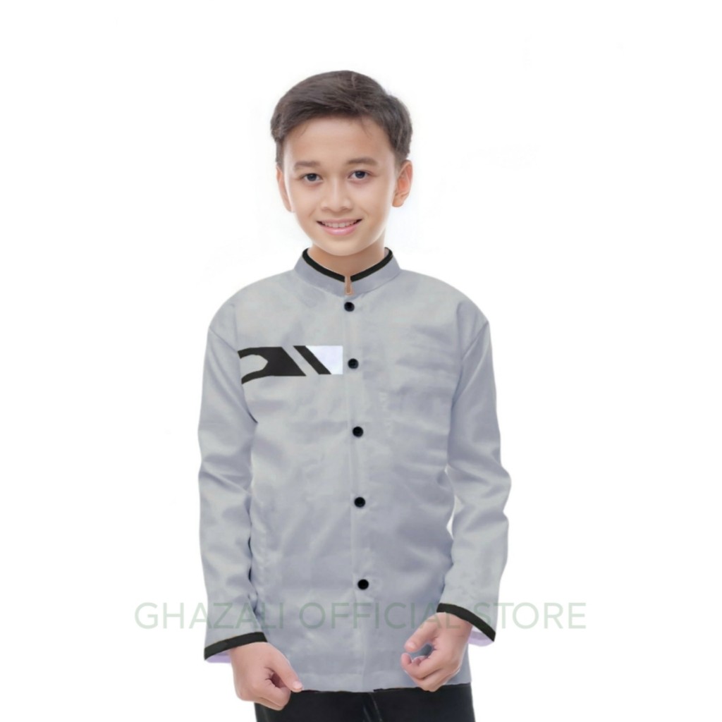 Ghazali - Setelan Koko Kurta Putih Lengan Panjang Anak Laki-Lak 7-13 Tahun Terbaru