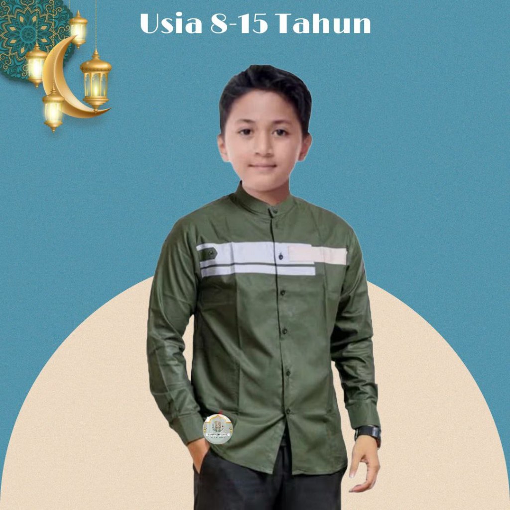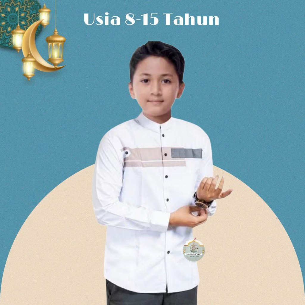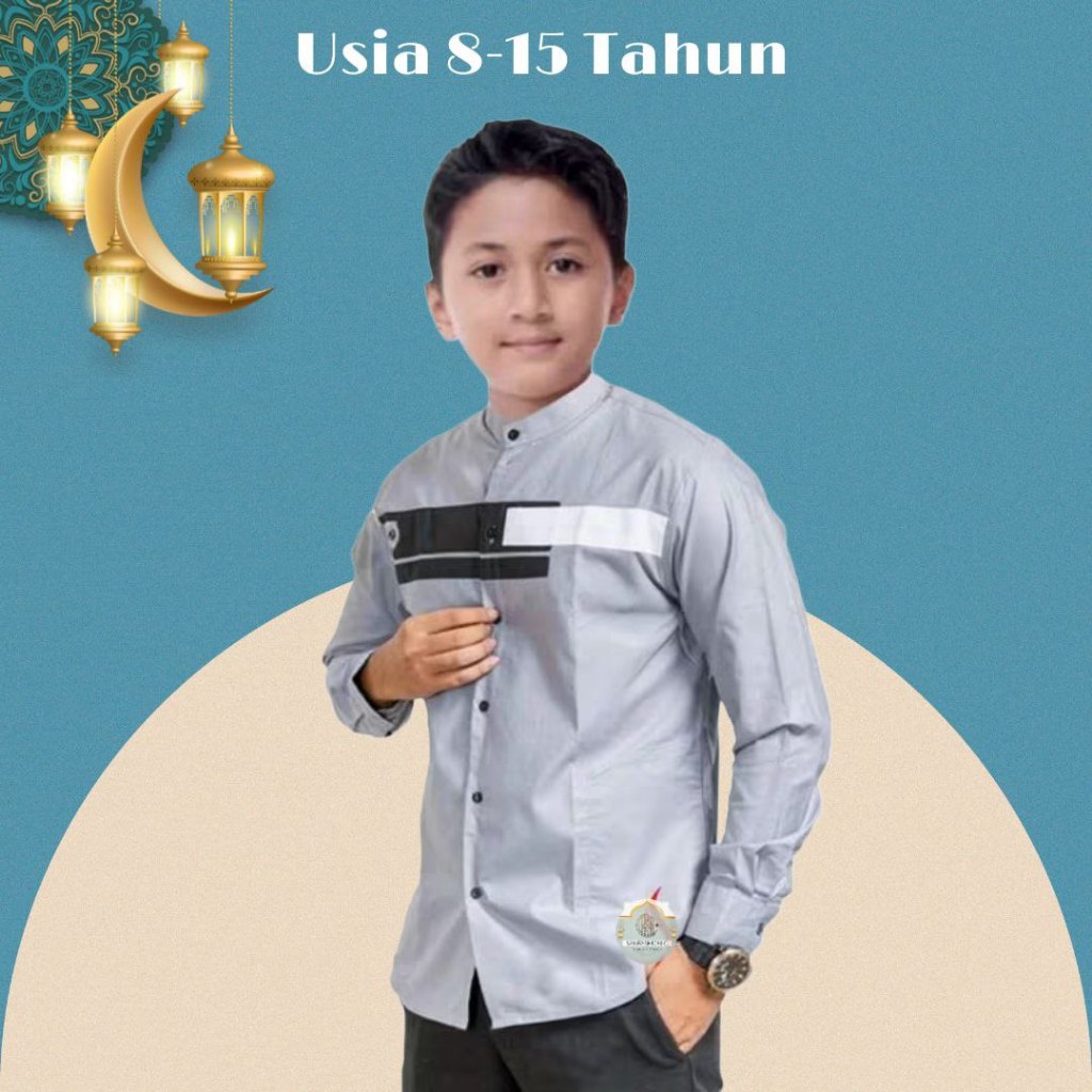Baju Koko Yordan Anak Lengan Panjang Baju Koko Anak Kombinasi Baju Koko Gus Azmi ( 8 - 15 tahun )