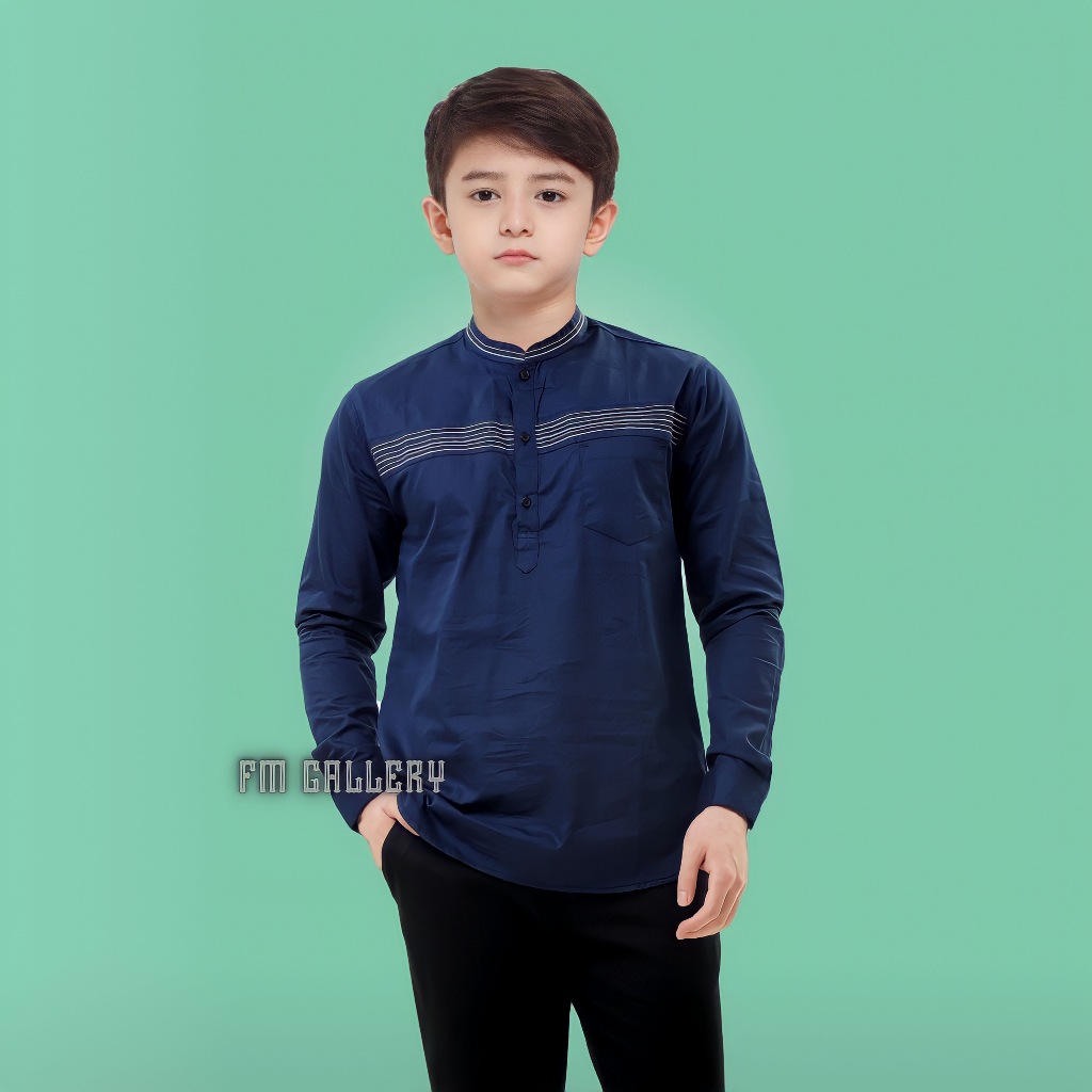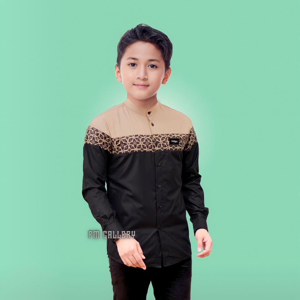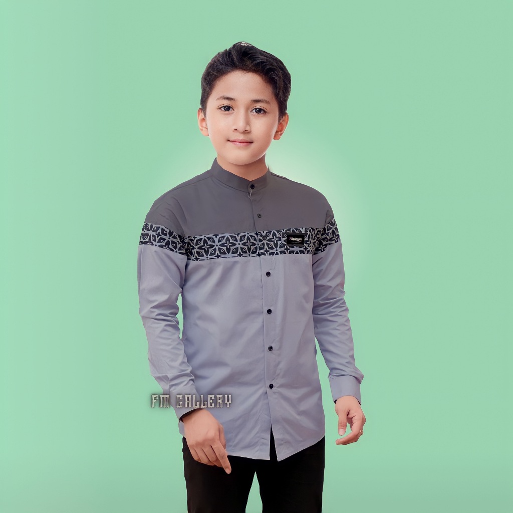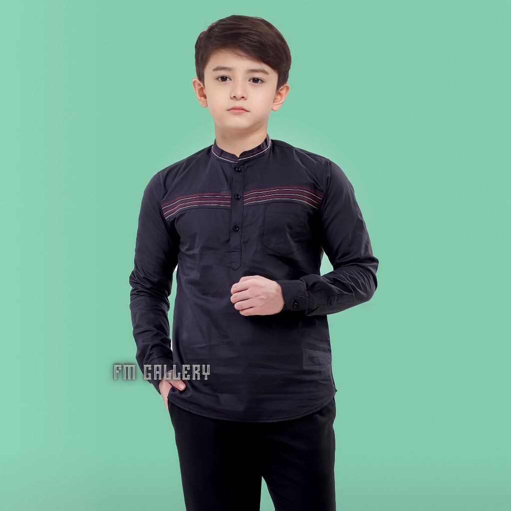 Baju Koko Anak Laki Laki - Koko Anak Lengan Panjang Motif Bordir MH Bahan Katun Adem Dipakai Usia 5 Sampai 14 Tahun