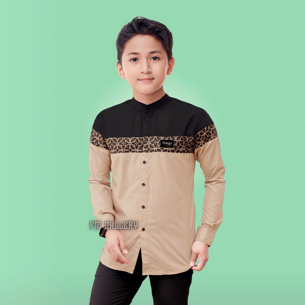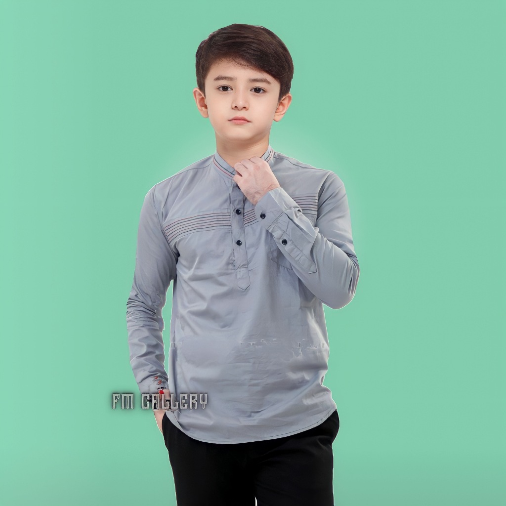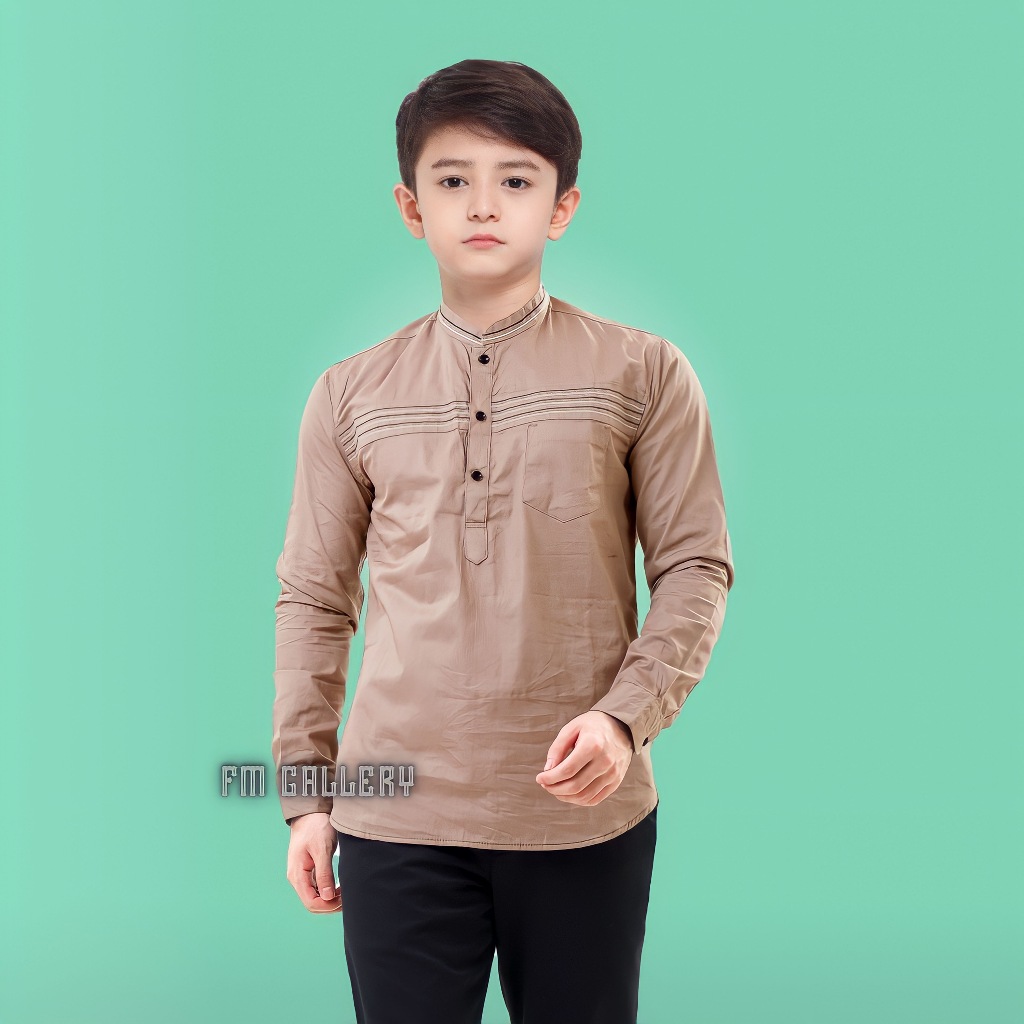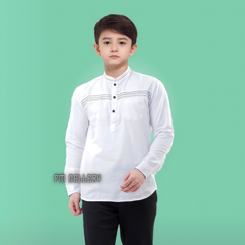 Baju Koko Anak Laki Laki - Koko Anak Lengan Panjang Motif Bordir MH Bahan Katun Adem Dipakai Usia 5 Sampai 14 Tahun