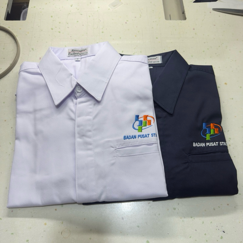 Kemeja Seragam BPS- Badan Pusat Statistik , Saku Satu Bahan American Drill - Full Bordir Komputer