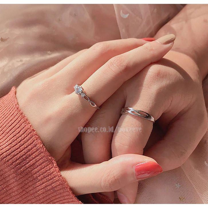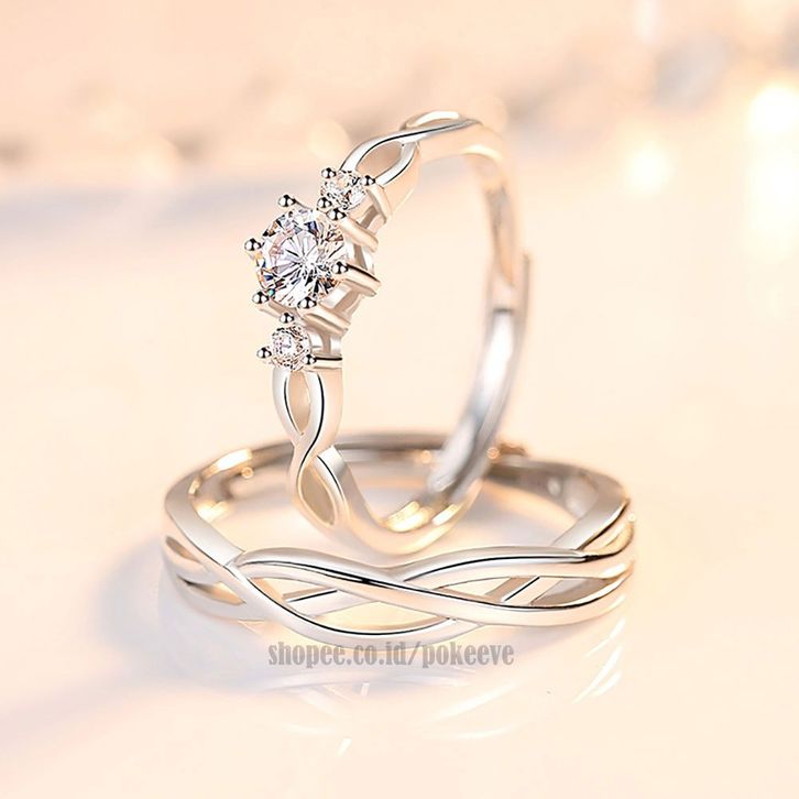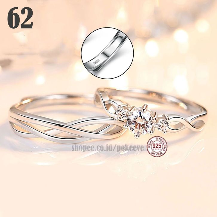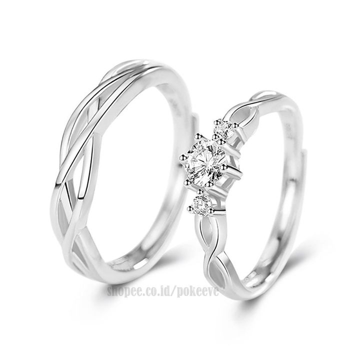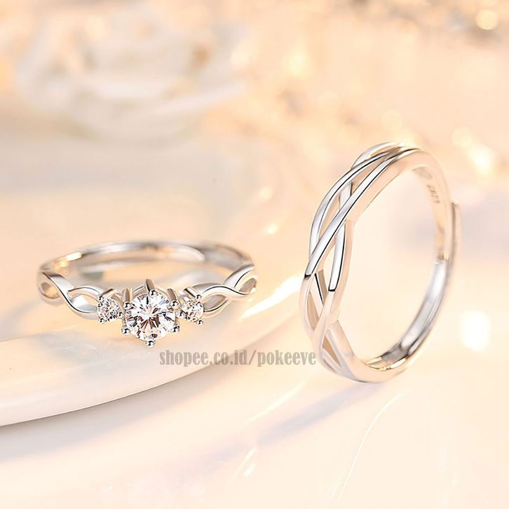 Cin cin Couple Silvr Pasangan/ Pengantin/ Tunangan/ Nikah Pria/ Wanita Perk S925 Riing