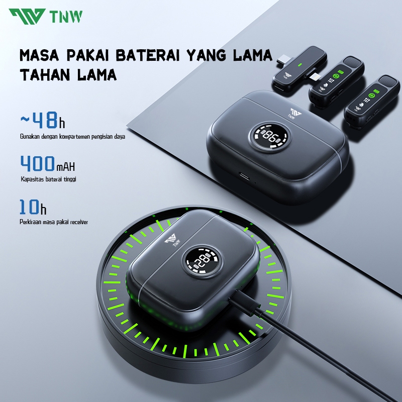TNW A13 Wireless Microphone 2-In-1 Clip On Mic Wireless Dual Lavalier Mikrofon Iphone dan Charging Case Bluetooth Mikrof