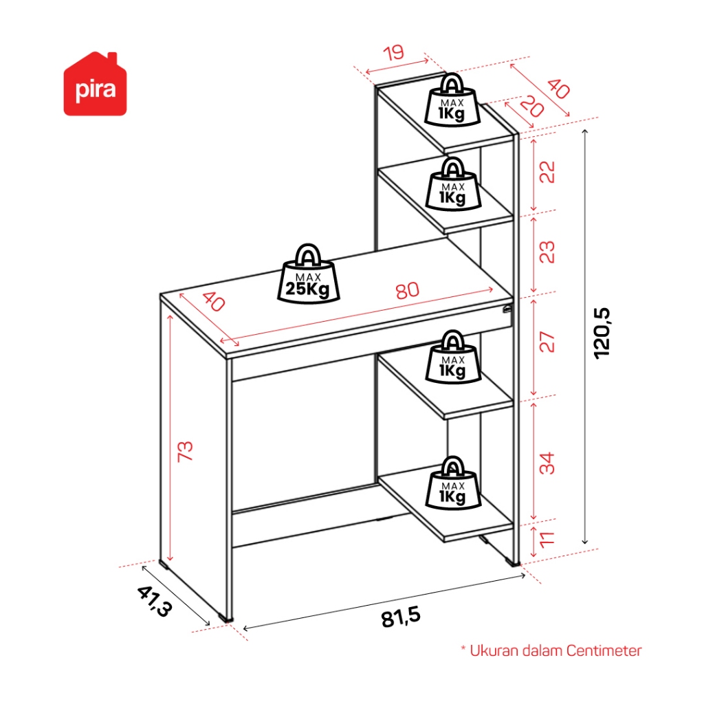 Pira Work - Kenko DK80 Meja Kerja / Meja Belajar dengan Rak Buku meja kerja meja belajar