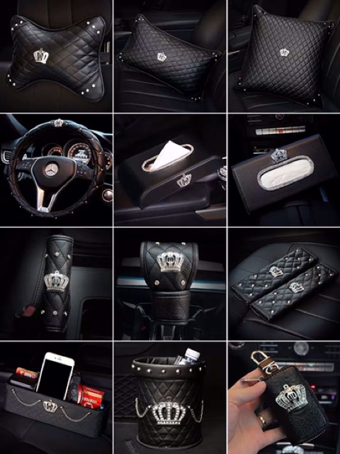 TERLARIS 9 in 1 SET DAD CROWN BLACK Series tempat tissue sarung stir mobil seat belt gear gigi rem bantal jok