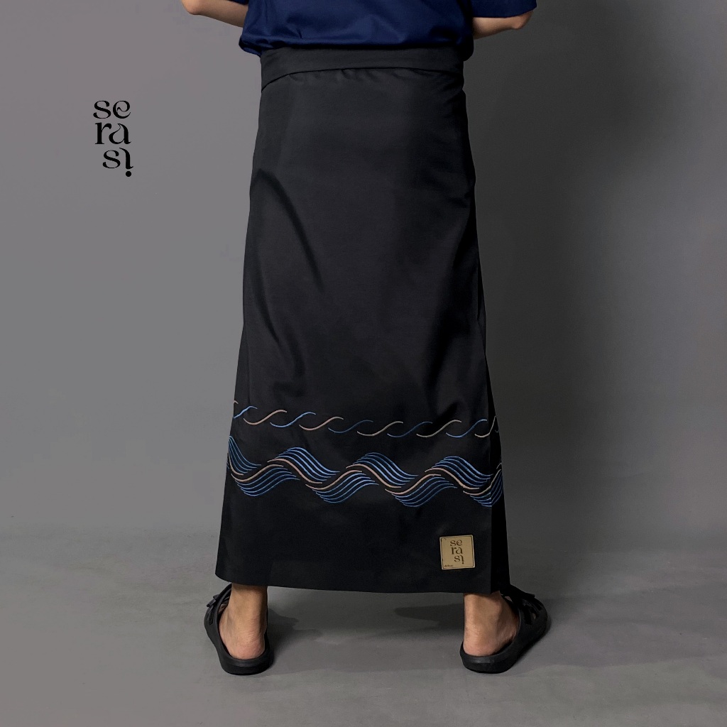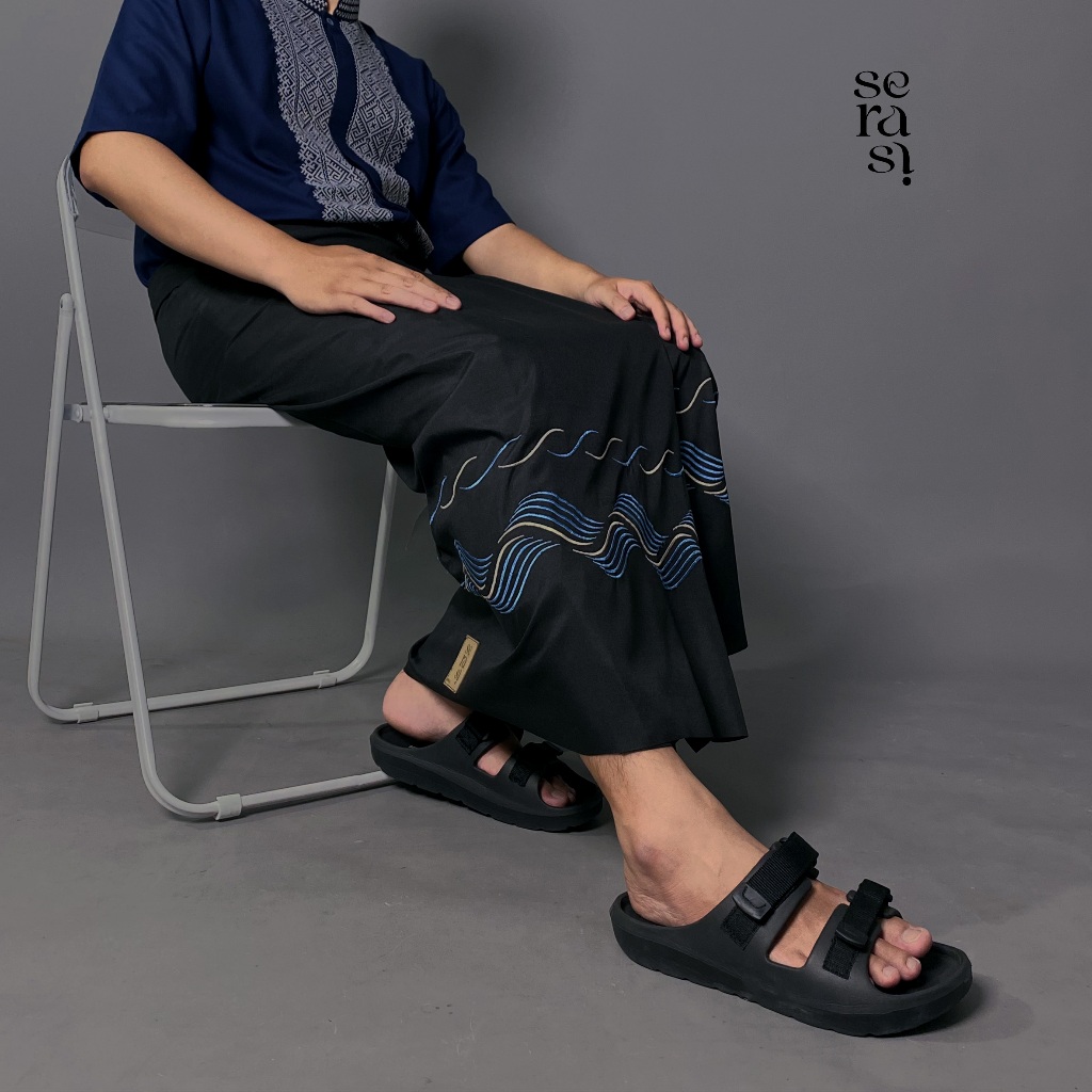 Serasi - Sarung Bordir Motif Ombak Sarung Pria Warna Hitam Bordir Sarung Sholat Bordir Timbul Bono