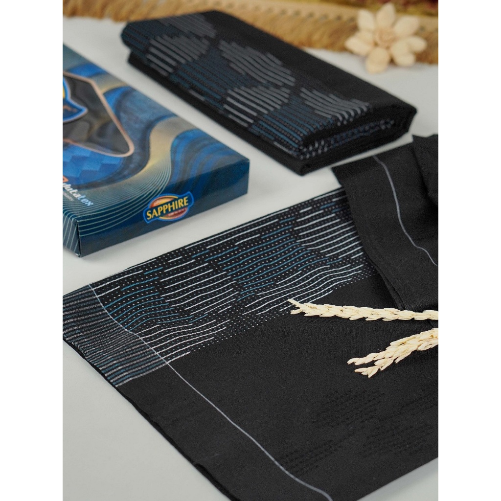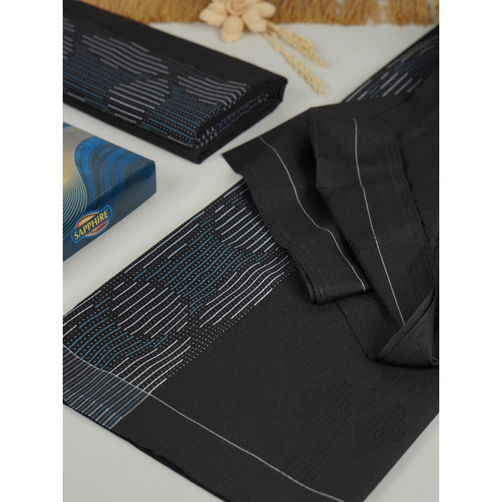 Sarung Tenun Sapphire Sarung Sholat Pria Laki Laki Remaja Dewasa Polos Warna HT Hitam Tumpal