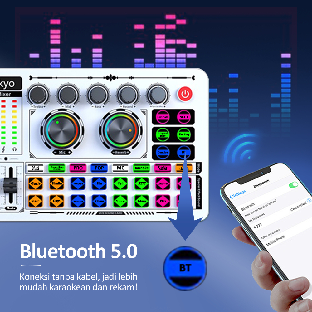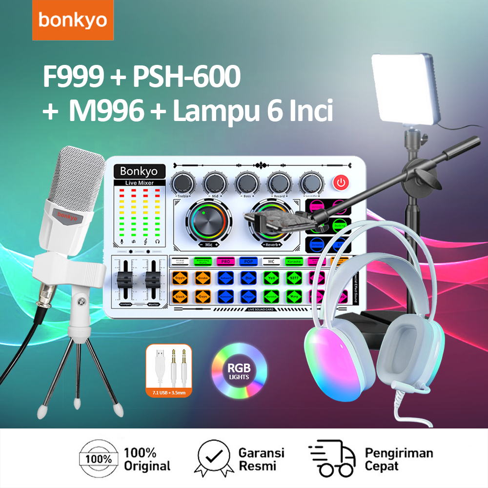 F999 Sound Card+m996 Mic+headphone+lampu Siaran Langsung 6 Inci Peralatan Audio Set Lengkap Mikrofon Sound Card Tiktok