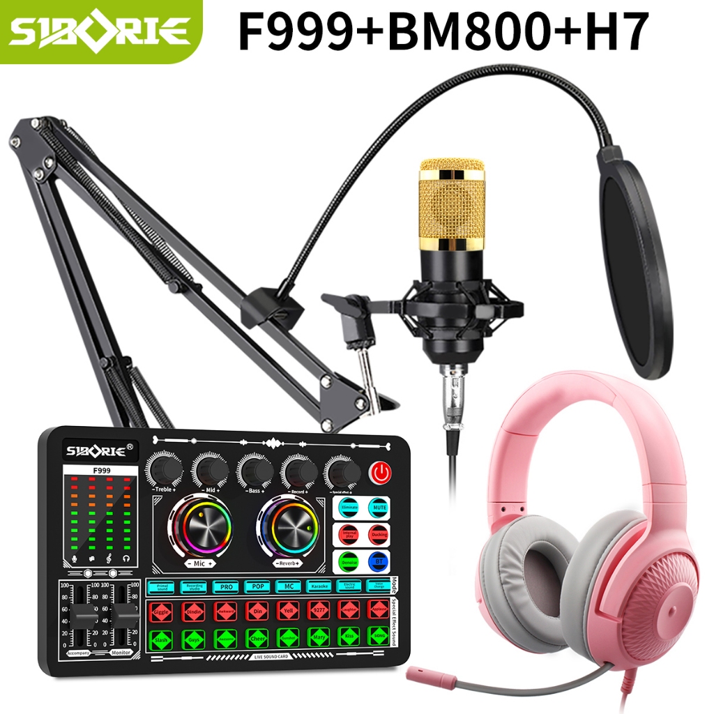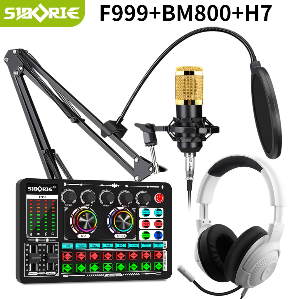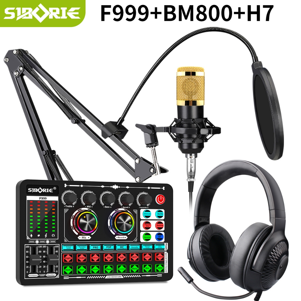 F999+BM800+H7 Paket Lengkap Sound Card Mic Headset Full Set For Streaming Langsung