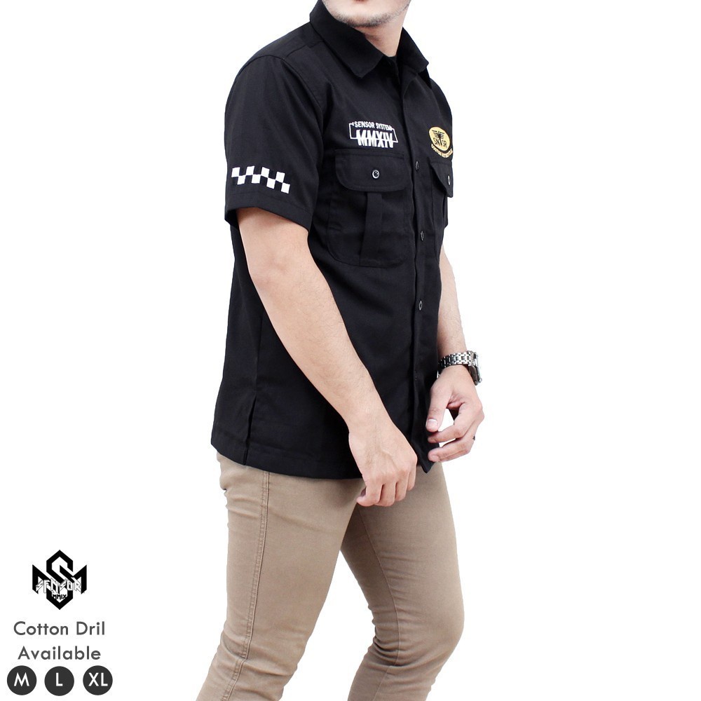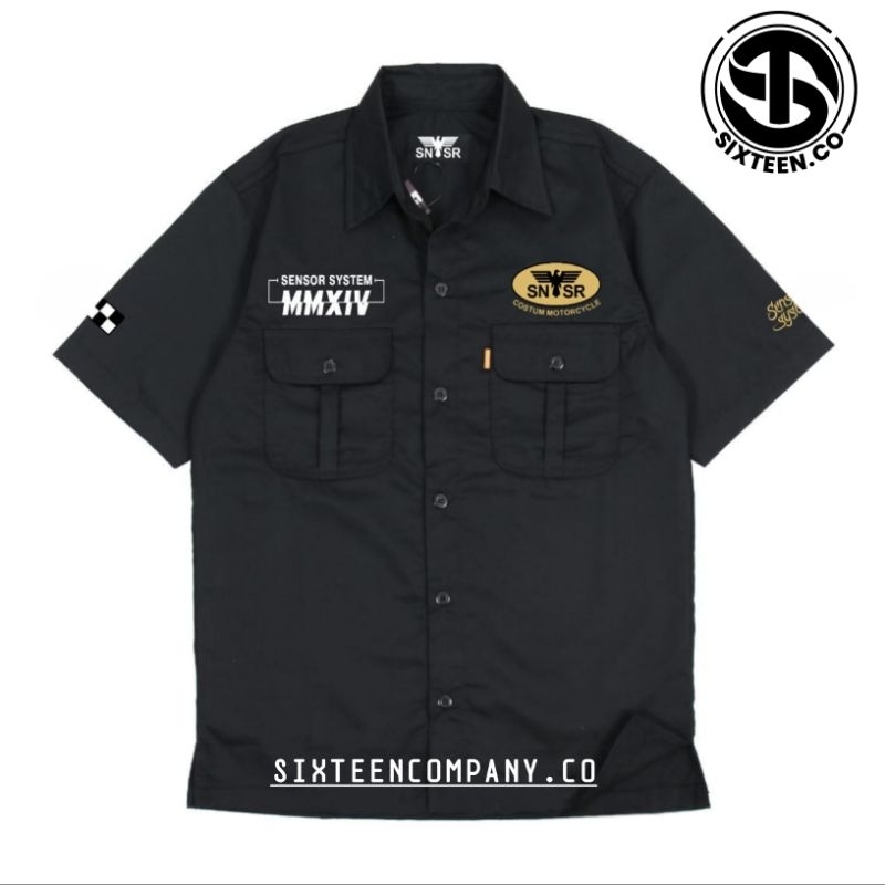 SIXTEEN Kemeja Pria Workshirt Premium Kemeja Casual Lengan Pendek Full Bordir Original Sensor Work Shirt Cowok Skena