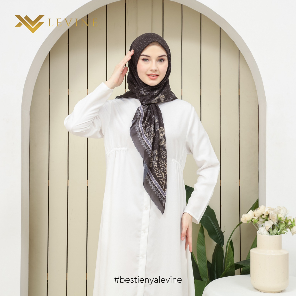 Levine – Leaf Line Scarf Kerudung Segi Empat Motif Hijab Voal Laser Cut
