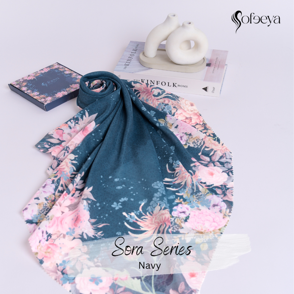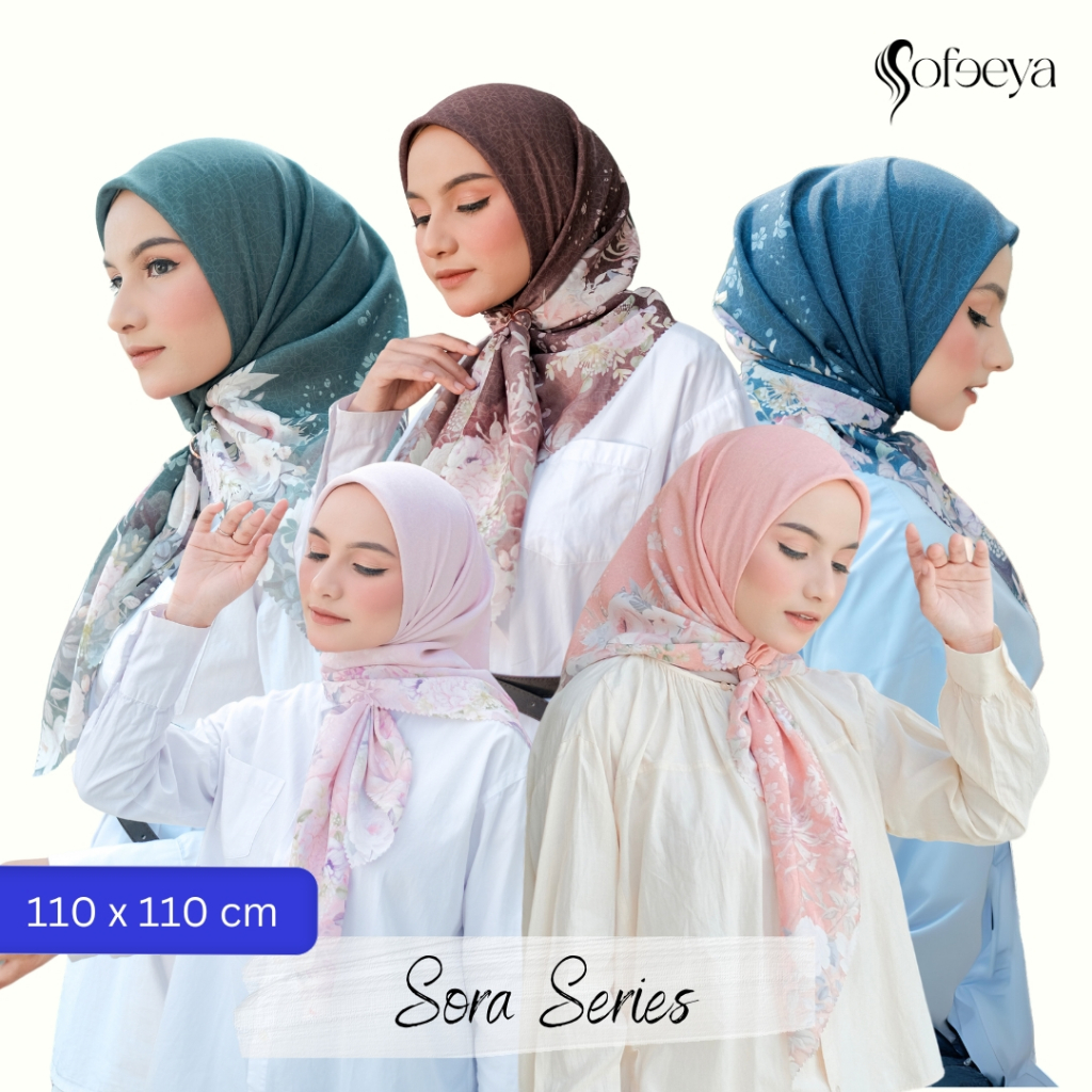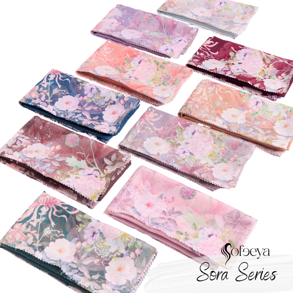 SOFEEYA - Hampers Hijab Segi Empat Kerudung Voal Printing Motif Sora Series Soft Box Jilbab Ukuran 110 x 110 cm Kerudung