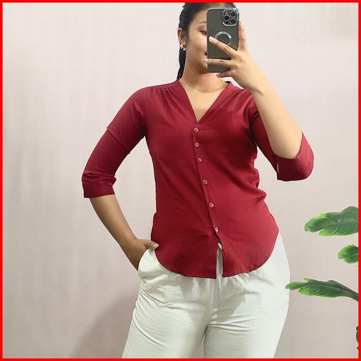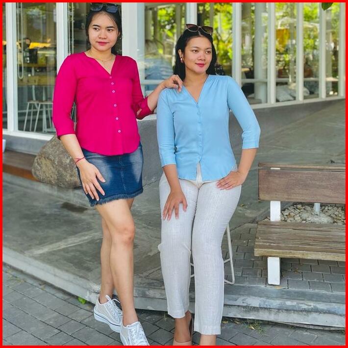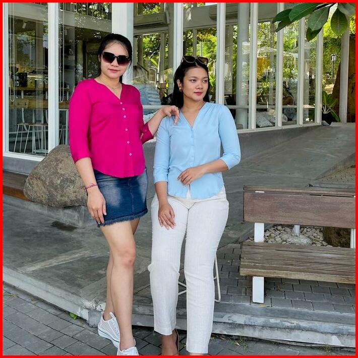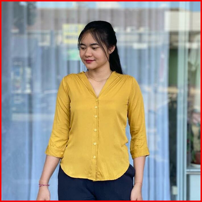 Caremuz Luna Kemeja Cewek Baju Kerja Atasa Top Kemeja Kekinian Kemeja Putih Polos Polos Panjang Rayon Wanita Cantik Vira