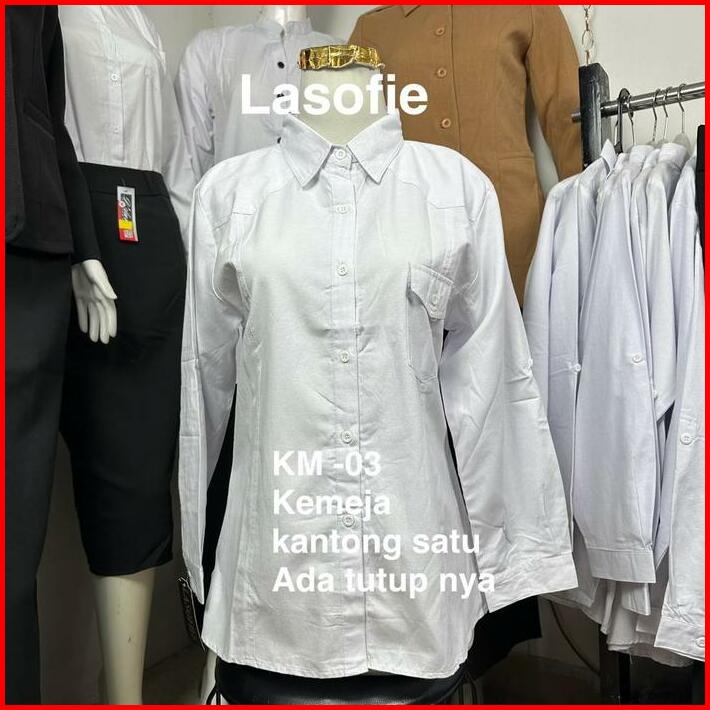 Sofi 3- Kumpulan Kemeja Ospek -putih Bersih Bb35-110kg Baju Atasan Wanita Kantong Panjang Basic