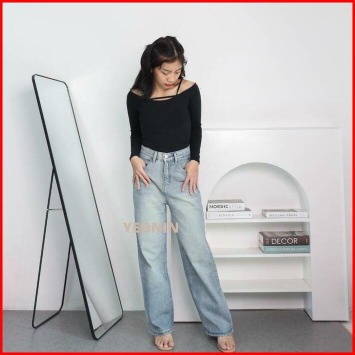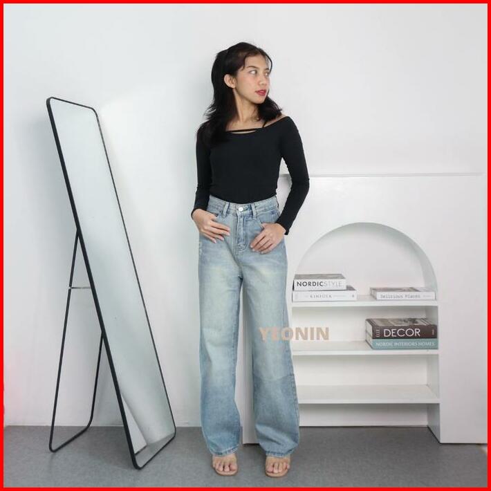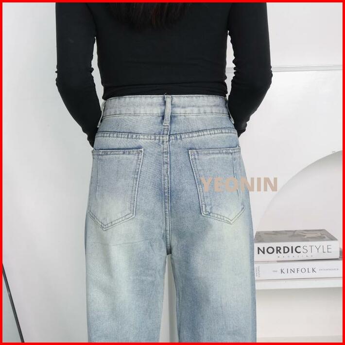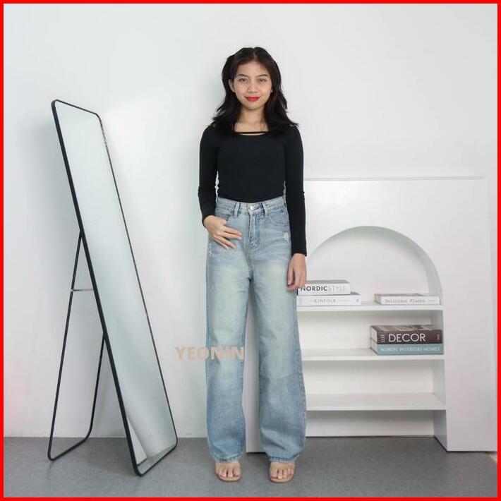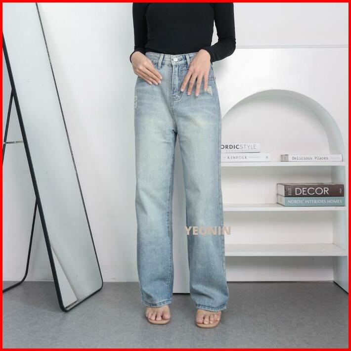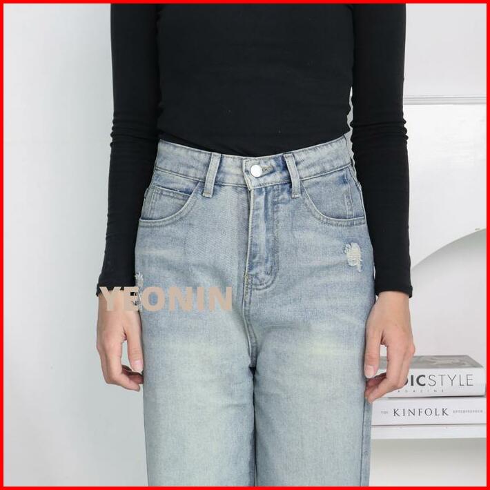 Yeonin Celana Panjang Wanita High Waist Ripped Baggy Jeans Premium Quality 318