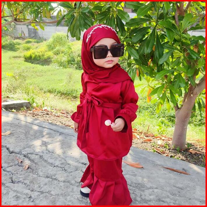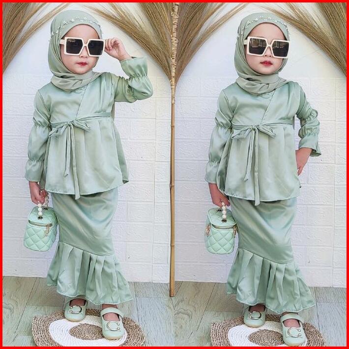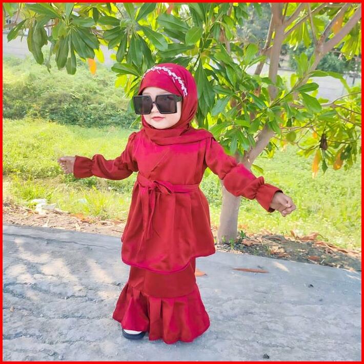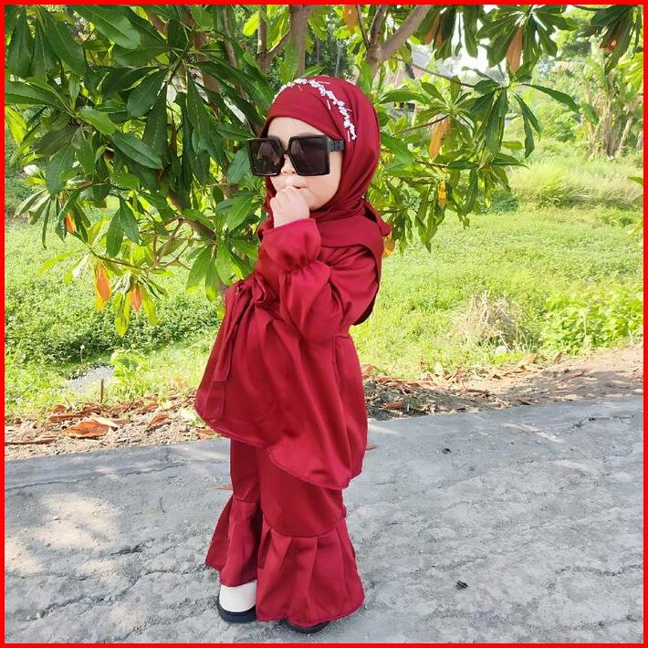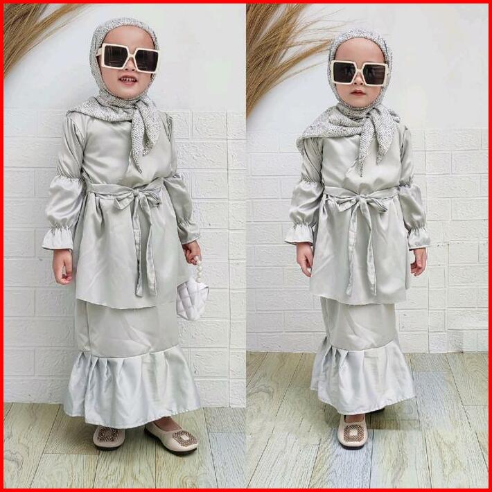 Baju Muslim Anak Perempuan Perempuan Setelan Rok Mermaid Bahan Maxmara Silk Usia 1-8 Tahun Atasan Celana Gamis