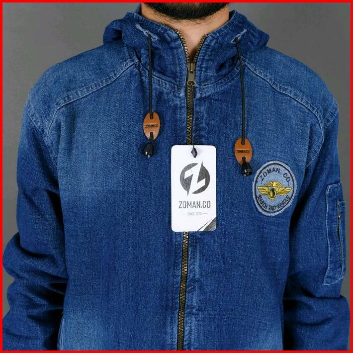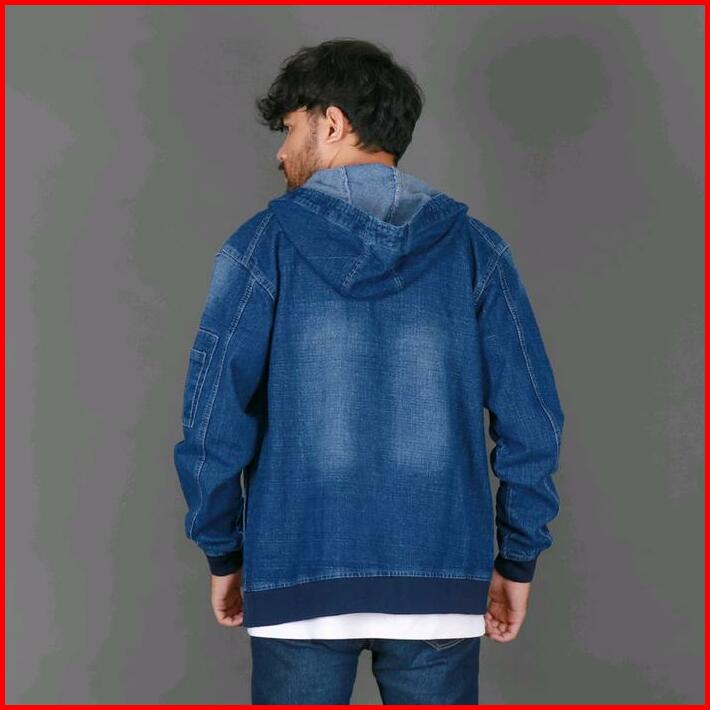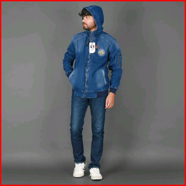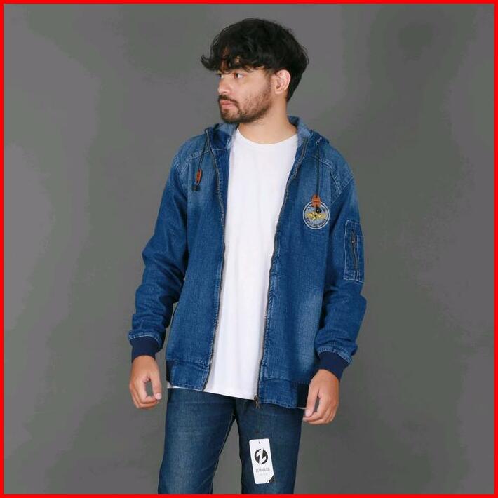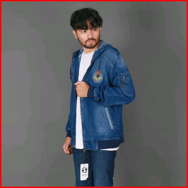 Jaket Bomber Jeans Topi Navy Blue M L Xl Dan Xxl
