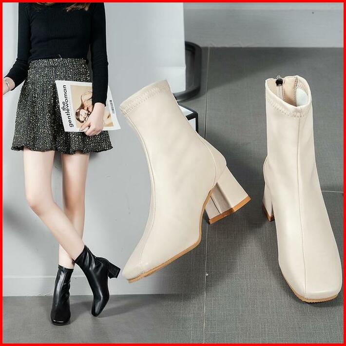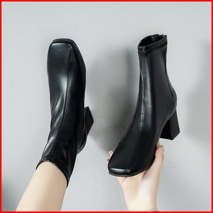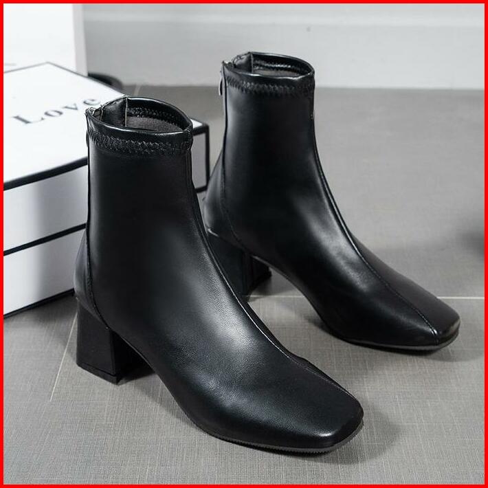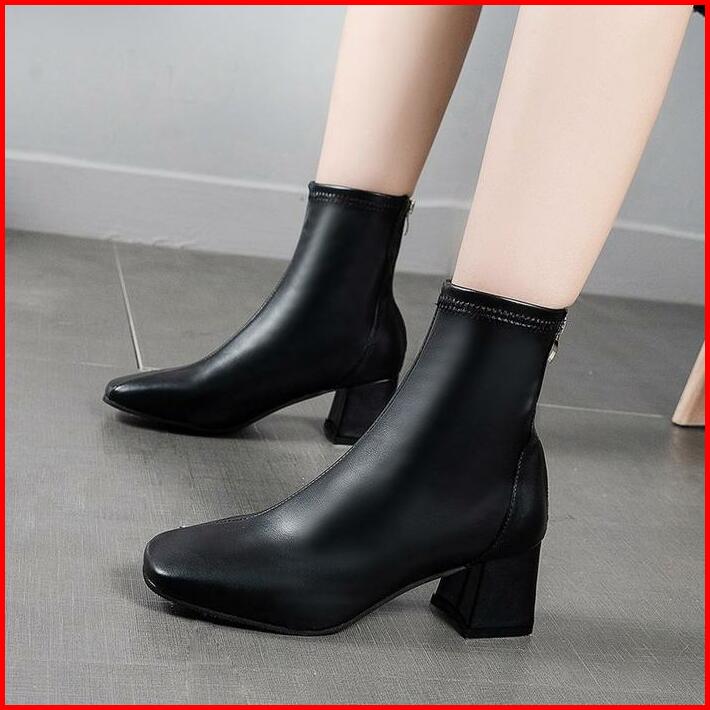 Sepatu Ankle Boots Heels Wanita Terbaru Import Korea Bot Hak Tahu Kulit Karet Murah Hitam Korean Style Black Booties
