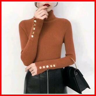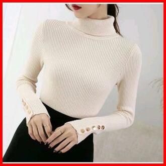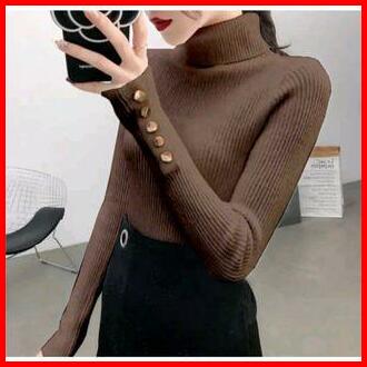 Gloryshop88 Baju Rajut Button Turtle Neck Knit Tebal Premium Inner Inara 7017-1
