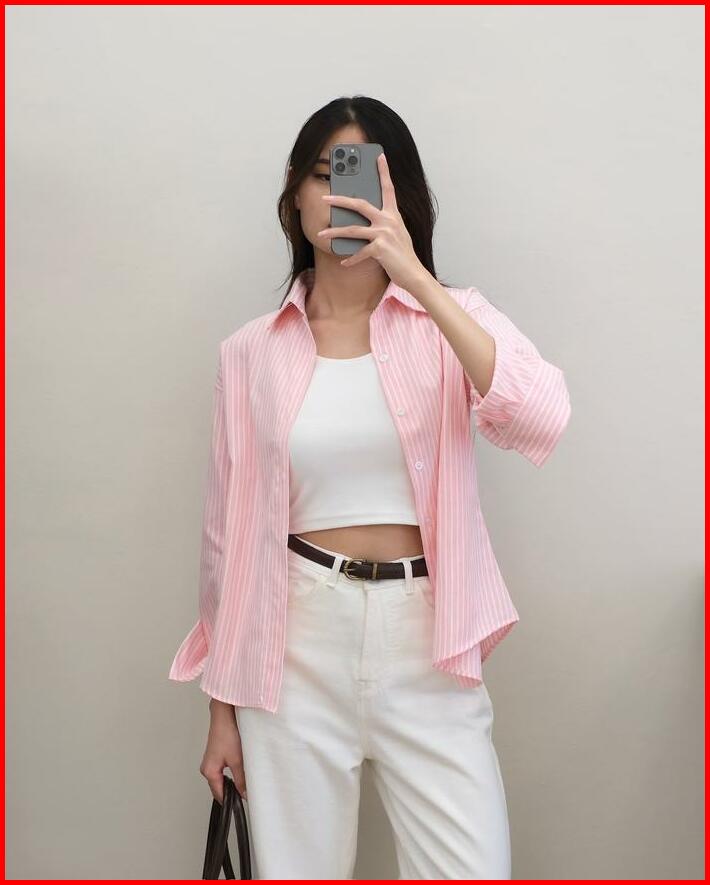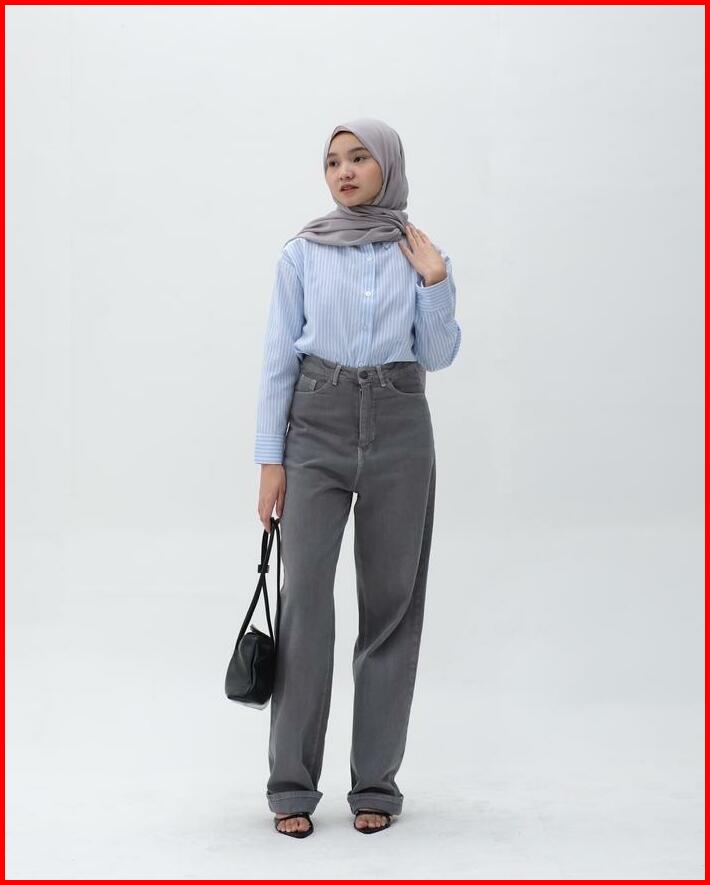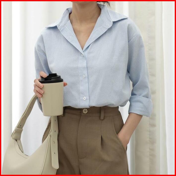 Kemeja Panjang Salur Wanita Hanni Striped Shirt Hulm