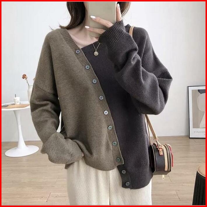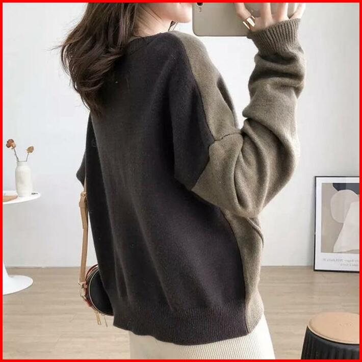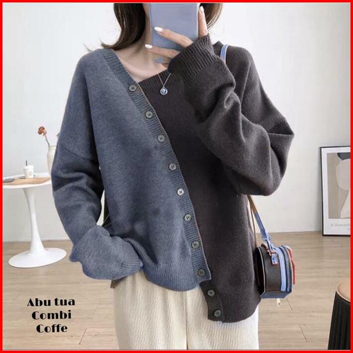 Baju Rajut Atasan Wanita Two Tone Lengan Panjang Combi Angel
