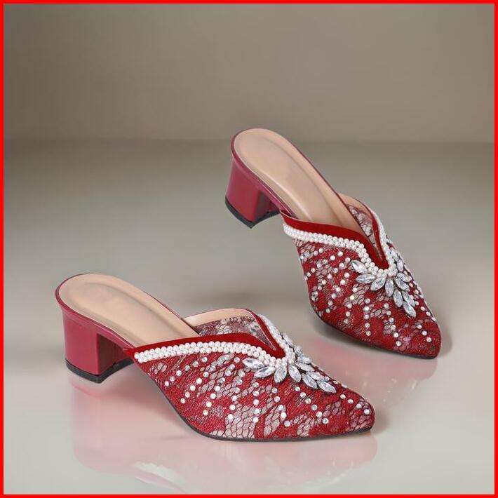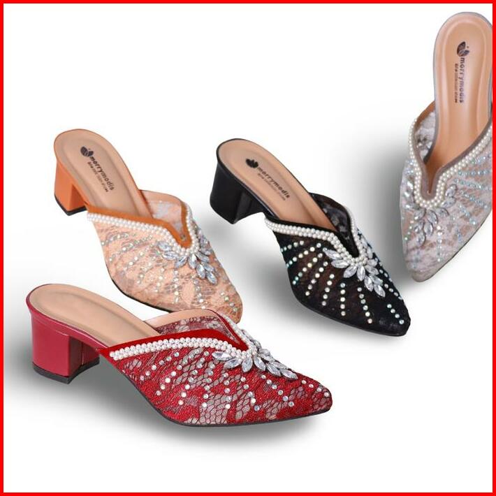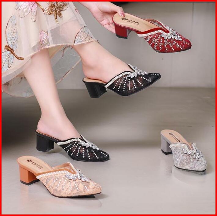 Herdian Rtwo 34 Sandal Heels Wanita Pesta Kondangan Hak Tahu 5 Cm Anti Slip Mules Hitam Karet Pink Putih Shoes