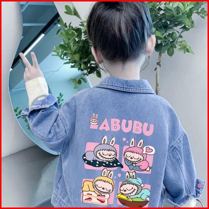 Jaket Jeans Anak Karakter Labubu Kuromi Untuk Anak Usia 1- 10 Tahun Fashion Perempuan Denim